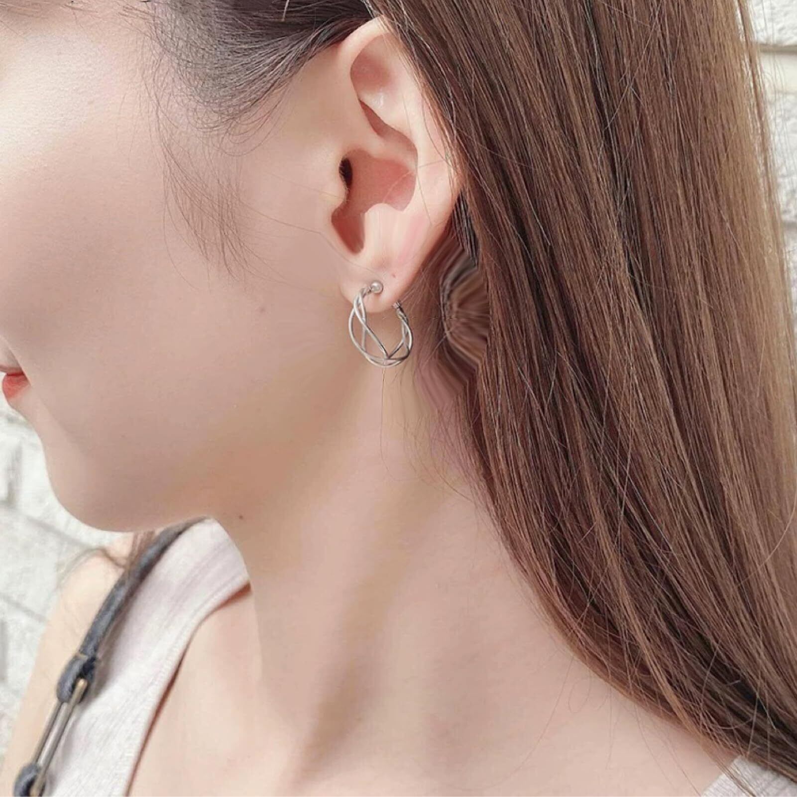 ランダムに編み上げたような立体感のあるフープタイプのイヤリングです。