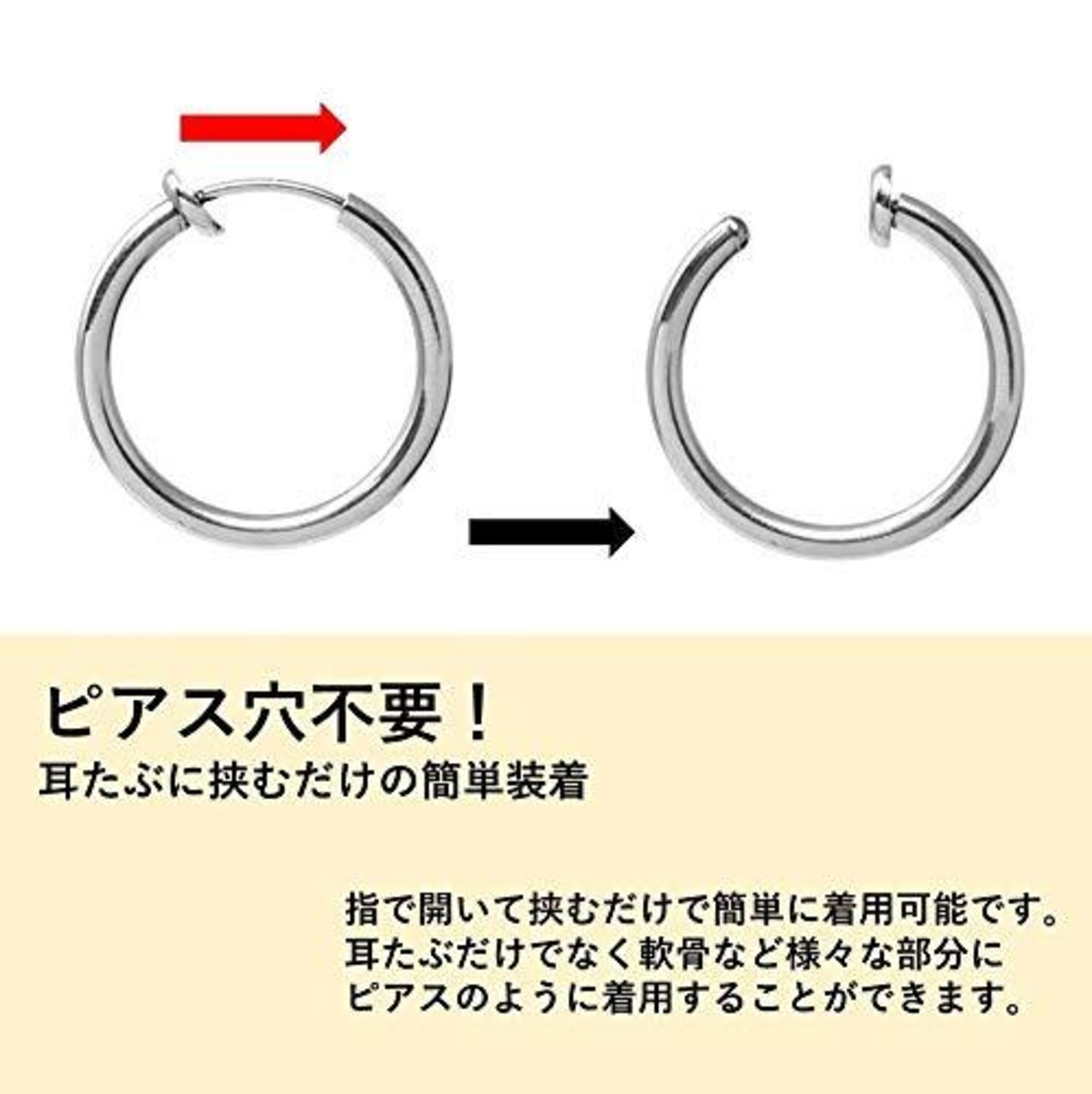 まるでピアスのようなフェイクピアス。ピアス穴必要無し、バネ式で耳たぶに挟んで使用するタイプなので手軽におしゃれを楽しめます。