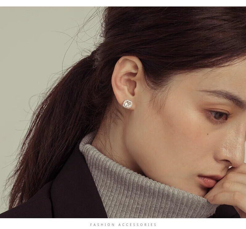 Yoursfs キラキラ ジルコニア ピアス レディース 人気 スクエア イヤリング クリップ 金属アレルギー対応 可愛い 母 女性 アクセサリー ギフト