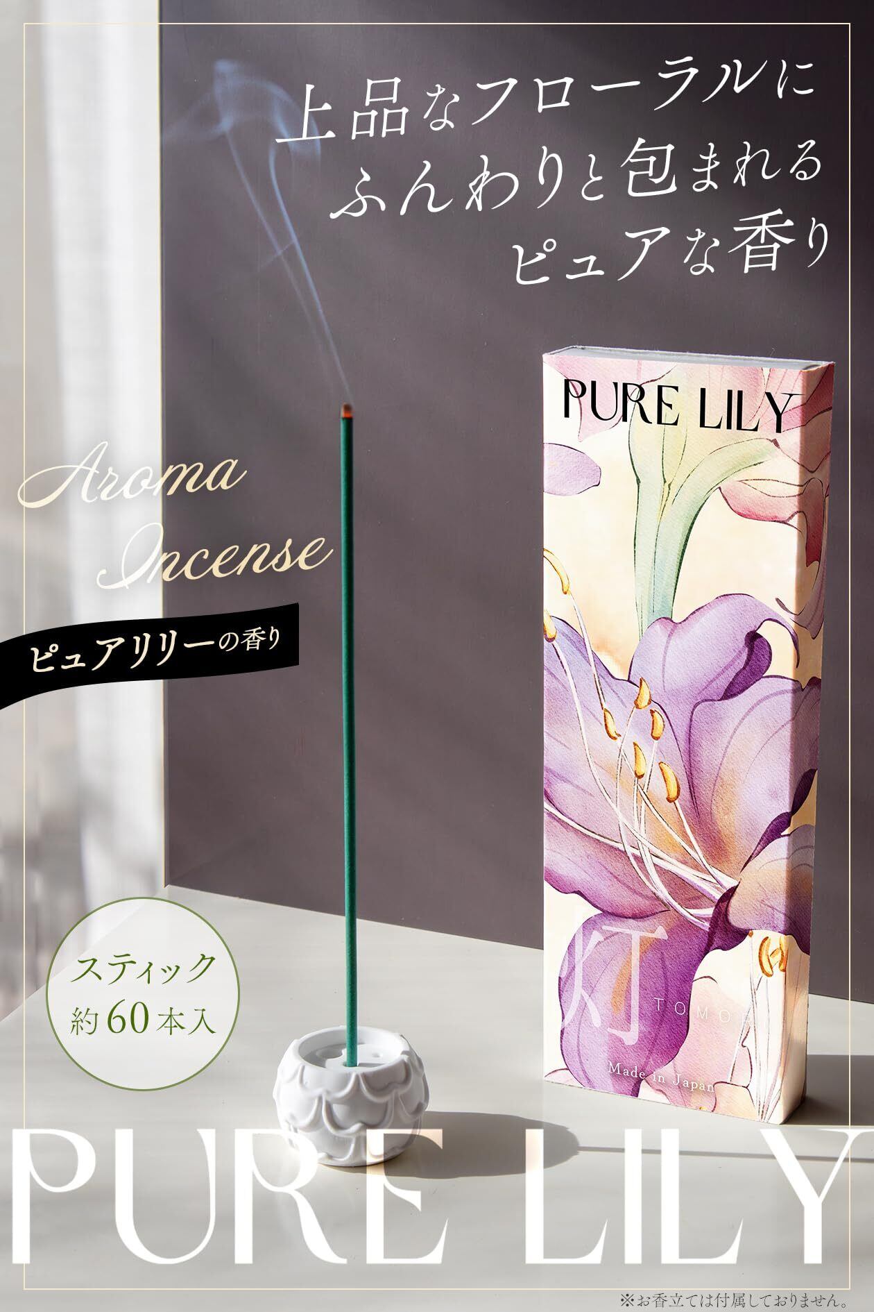 【透明感が心地いい瑞々しい香り】お香 ピュアリリー 線香 約60本入 日本製 アロマ ムスク バニラ 上品 淡路島産 インセンス お香立てなし ギフト 【長さ:約13.5cm / 燃焼時間:約30分】灯 TOMORI