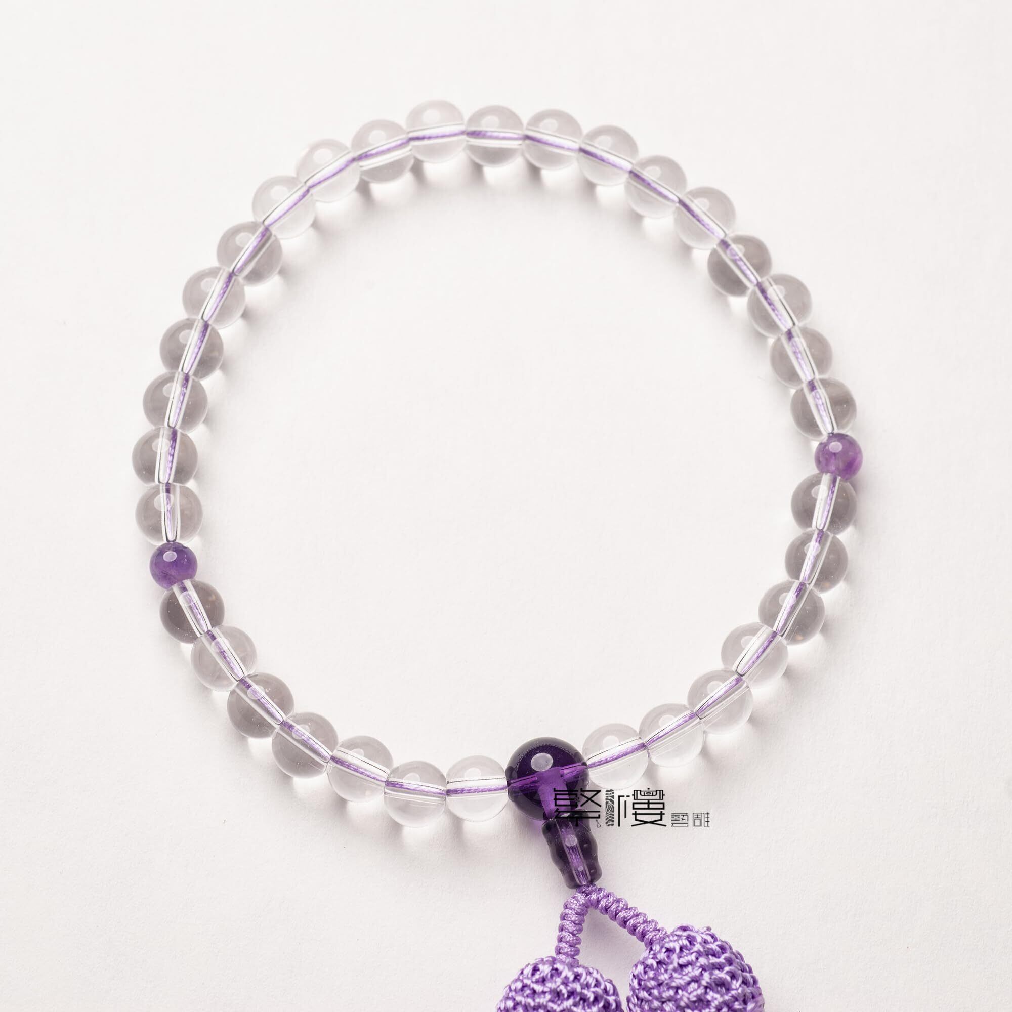 数珠 女性用 葬儀 念珠 本水晶 ホワイトクリスタル 数珠入れ 36玉 手作り念珠 葬式 墓参り 法事 念誦 全ての宗派に使用可能 (主珠:透明水晶, 房色:ラベンダー色)