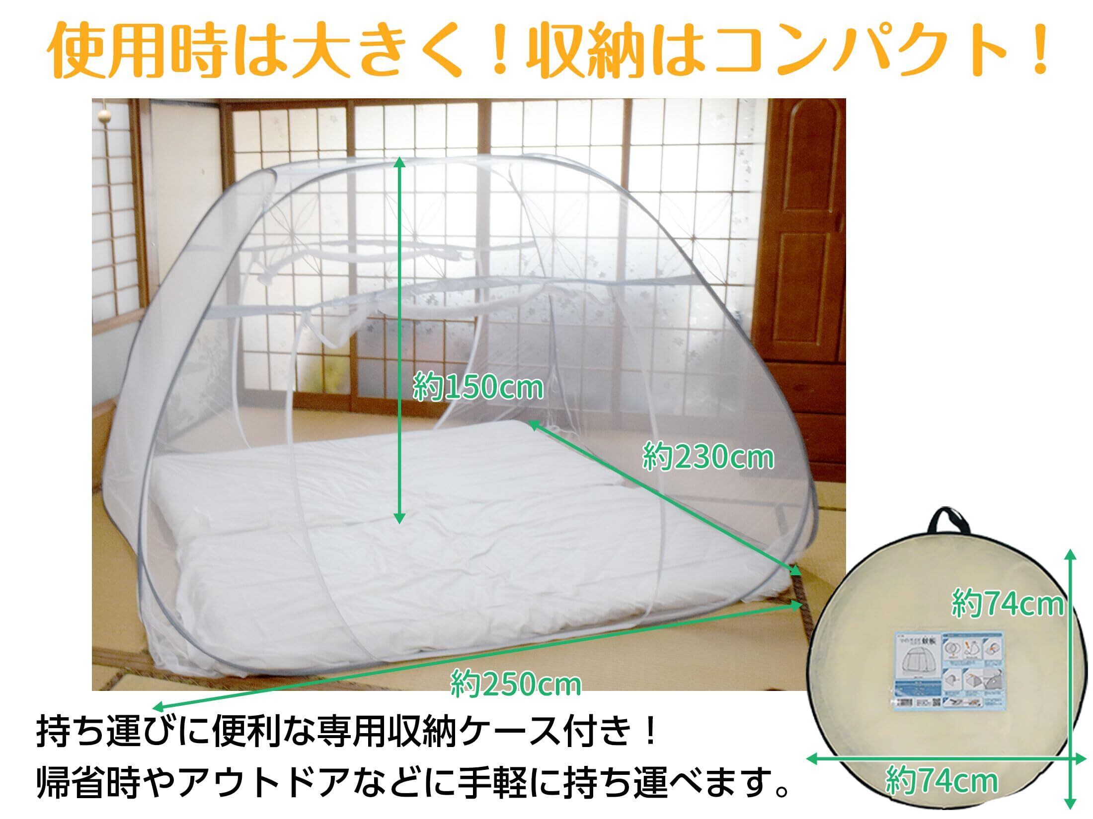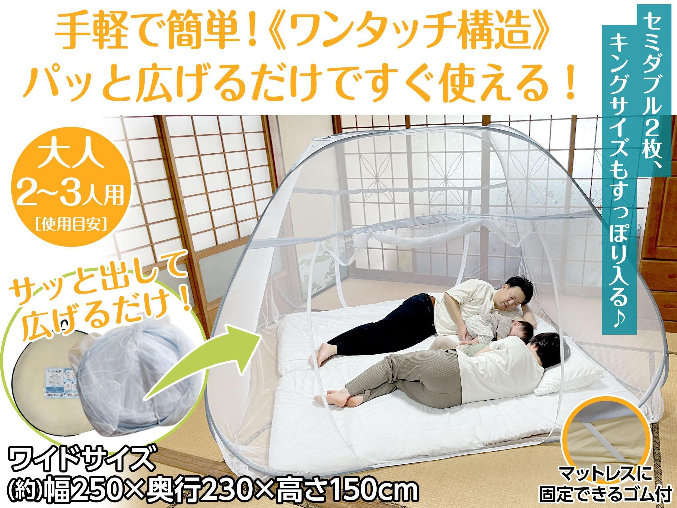 MTK 蚊帳 かや 幅250cm キング 3人用 折りたたみ 底付き ワンタッチ 収納袋 2ドア テント式 日本語説明書 ベッド ベビー 蚊帳んぽ キャンプ テント 蚊 ムカデ 虫対策 虫よけ モスキートネット KAYA-03 | 毎日発送✿はなまる