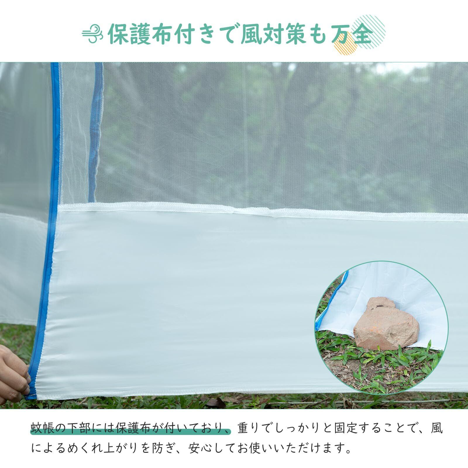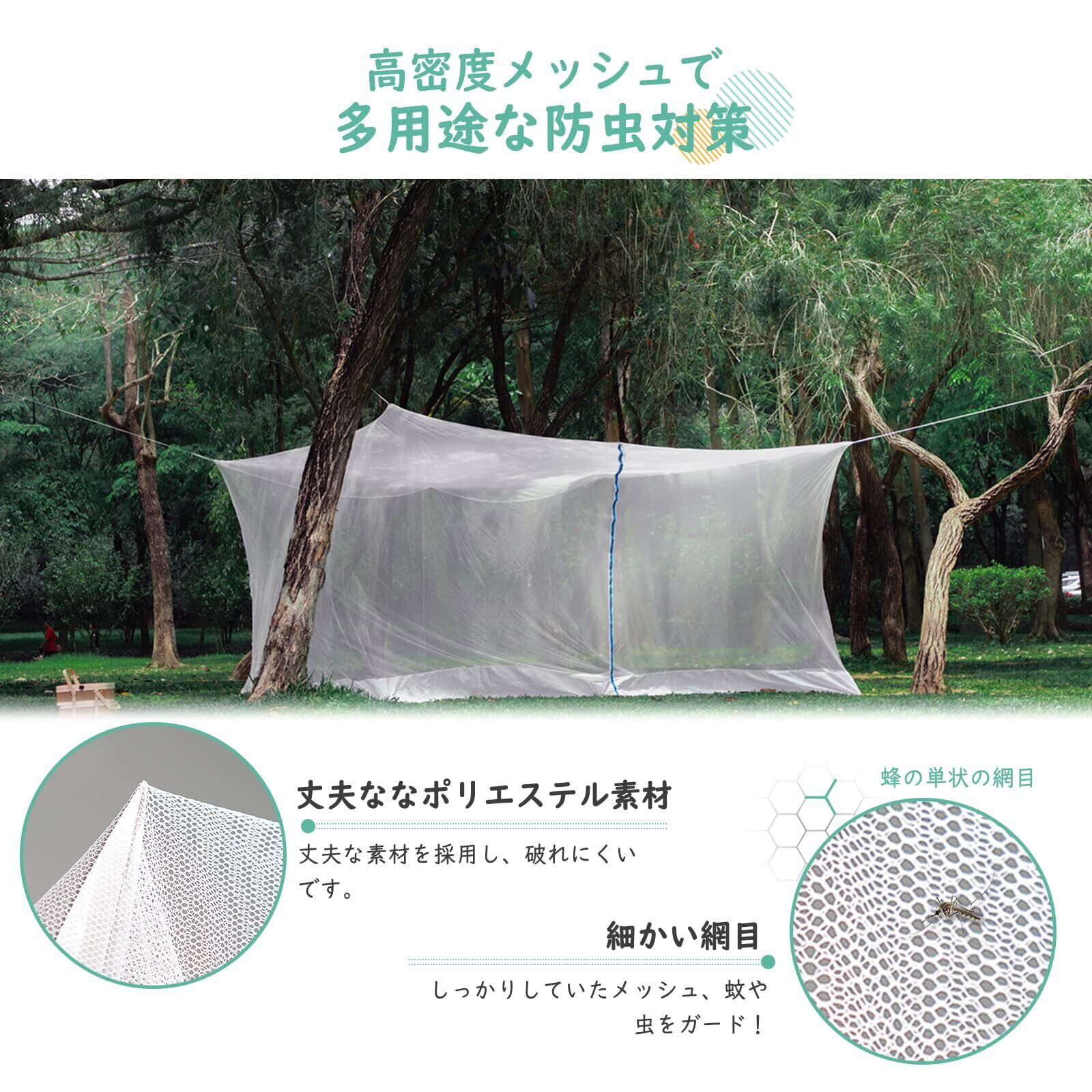 【高密度メッシュで多用途な防虫対策】高密度モスキートネットが蚊や小さな虫をしっかり遮断し、優れた通気性で蒸し暑い日も快適な空間を提供。キャンプや旅行、室内の防虫対策として、赤ちゃんの寝室や夏の夜など幅広いシーンで活躍します。