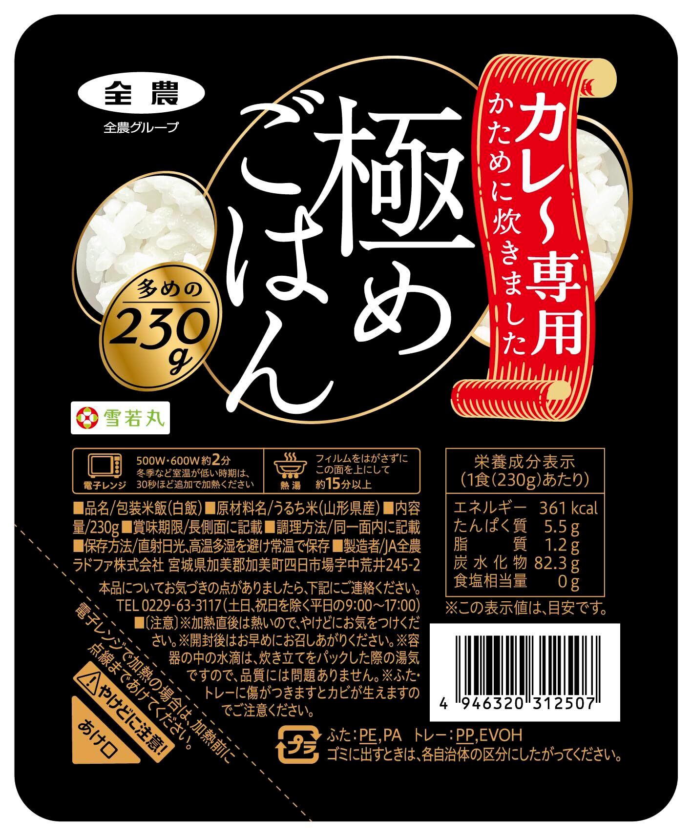 しっかり食感が特徴の「雪若丸」を使用し、程よくかために炊き上げた、カレーによく合うパックごはんです。