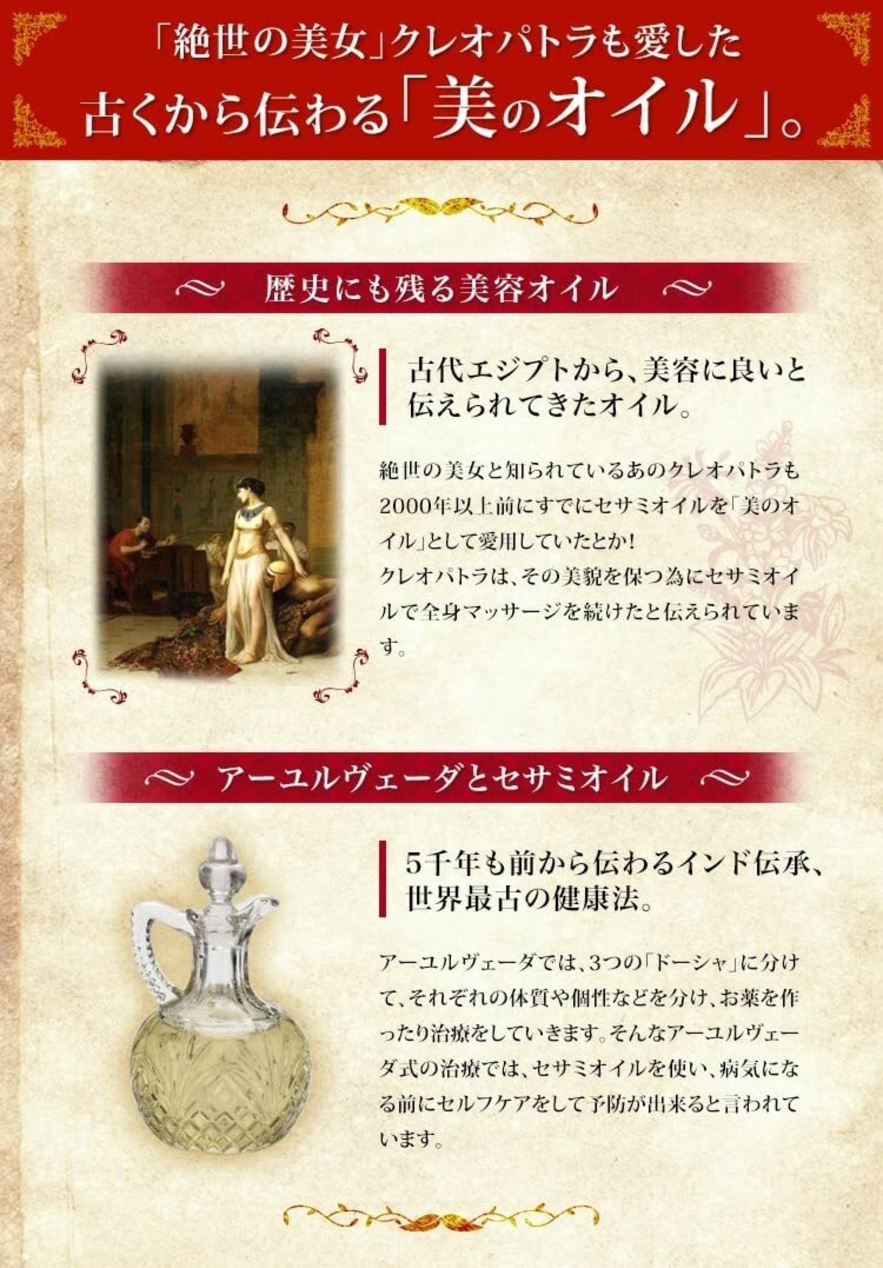 ■セサミオイル100% ■充填:日本(Made in Japan) ■産地 : アフリカ・アジア等