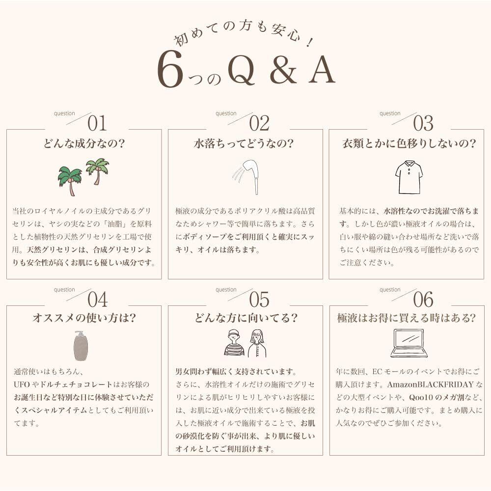 おすすめは、水溶性マッサージオイルのロイヤルノイルと混ぜ合わせ!相性バッチリ