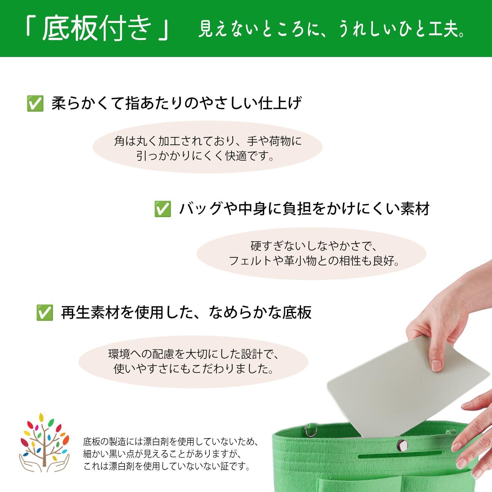 【軽いのにしっかり自立!底板付きフェルト素材】 わずか103gの超軽量。高品質なフェルト素材を採用しており、柔らかさと自立性を両立。バッグの中で形を整え、型崩れを防ぎます。 監修者の視点から、フェルト素材の厚みや底板の柔軟性にもこだわり、再生素材を使用した滑らかな底板が付属。環境への配慮と実用性を両立した設計です。