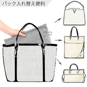 バッグ交換便利。一つにまとめることができ、軽量で薄型なので出かける際にそのまま別のバッグに入れ替えられで便利です。防水素材は通勤、通学、買い物、旅行や出張の時に鞄を汚れから守ります。