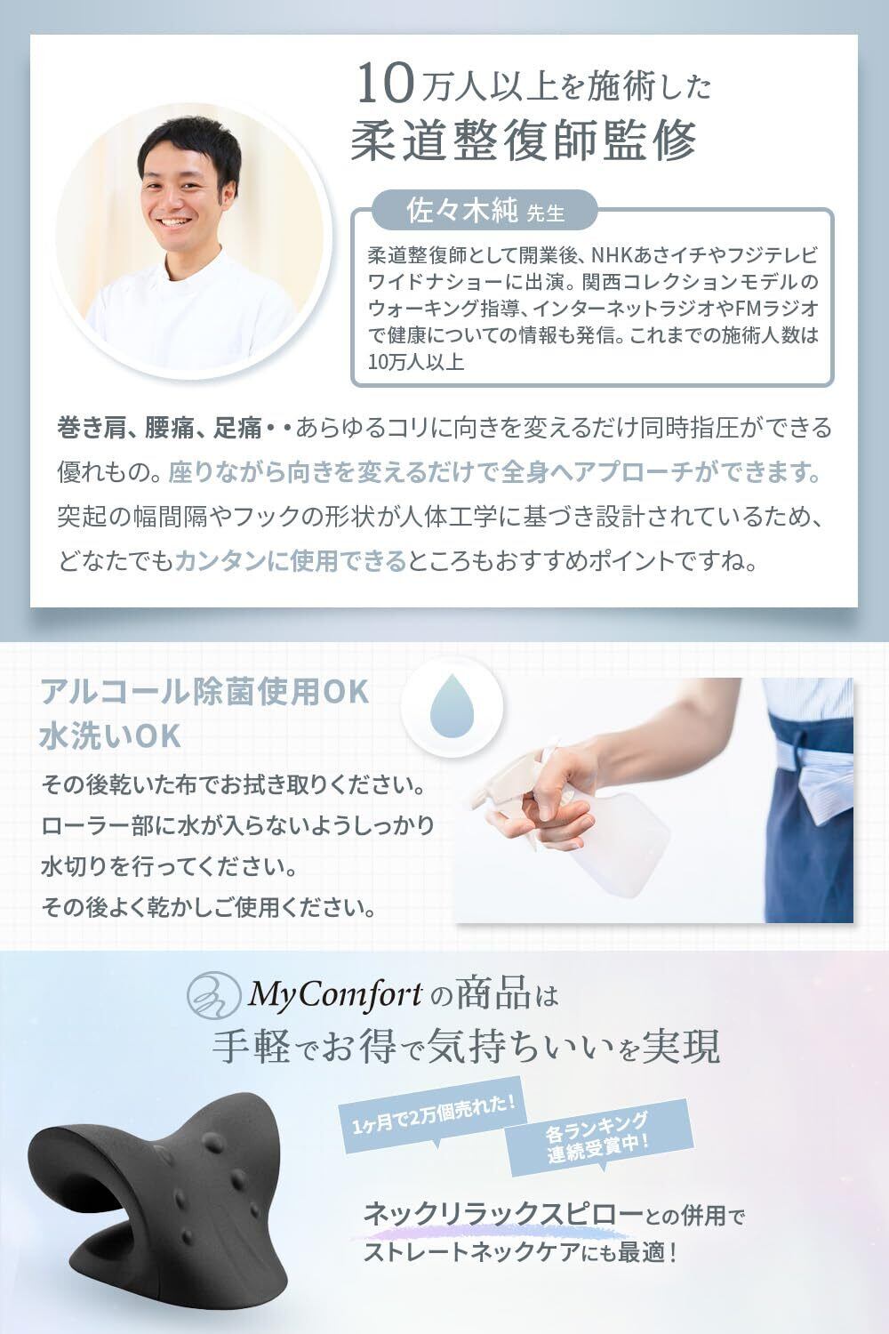【柔道整復師が推奨する突起構造】海外で大ヒット中のツボ押し棒・指圧器を日本人向けに改良することに成功。人間工学を基に算出した突起の幅間隔やフックの形状だからどんな方でも簡単に使用することができます。筋膜リリース、トリガーポイントセラピー、深部組織のツボ押しに最適です。累計販売個数100万個を突破し、ネックリラックスピローなどツボ押しグッズを開発してきたMyComfort(マイコンフォート)だからこそ実現できる、ボディフックセラピーを是非、体感してみてください。