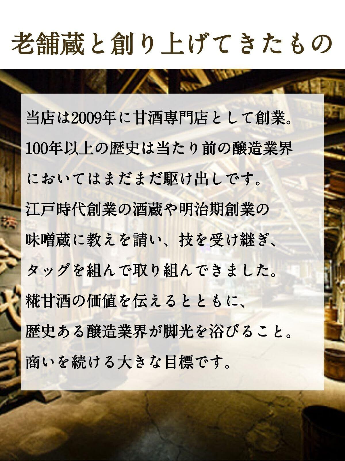 古町糀製造所が誇る、厳選された国産米と良質な水から作られた甘酒です。品質にこだわり、無添加・無着色のため、安心してお召し上がりいただけるのが嬉しいポイントです。