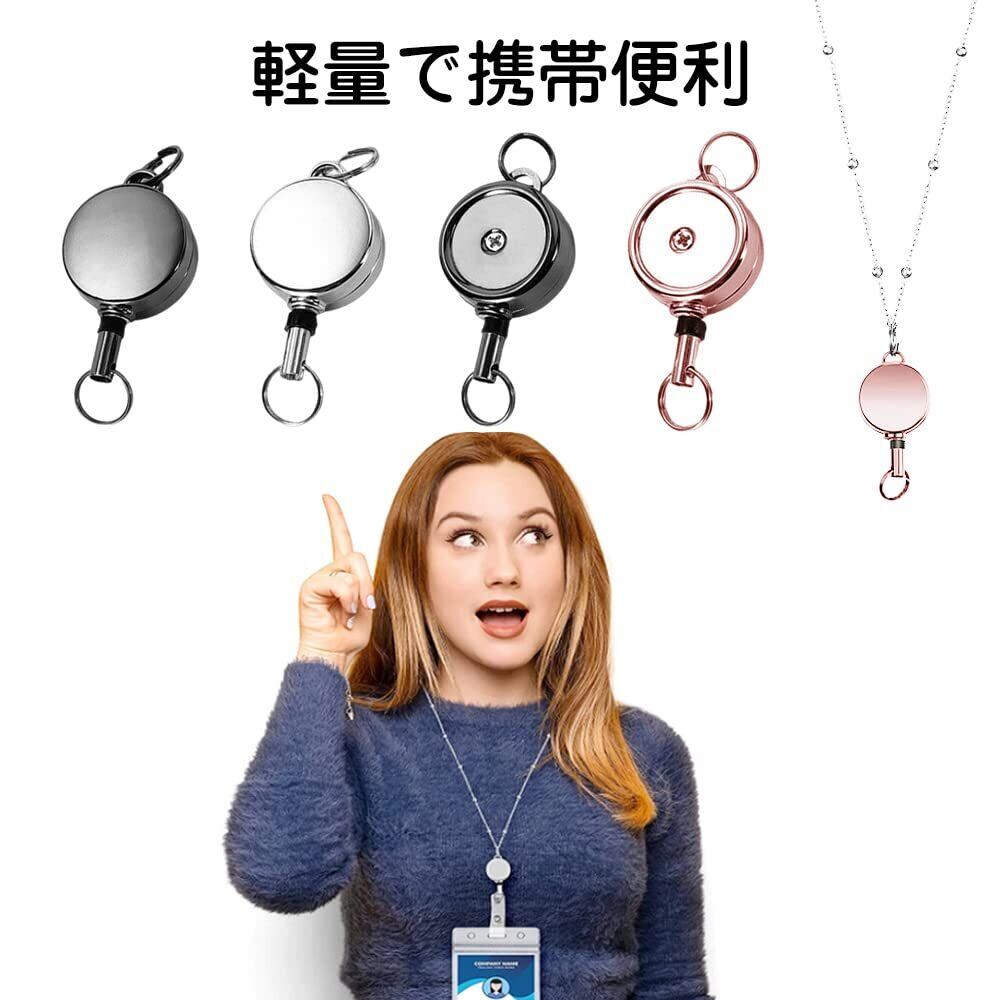 4個セット リールキーホルダー 亜鉛合金 リールキー 伸縮自在 パスケース リール 金具 リールストラップ 吊り下げ名札用