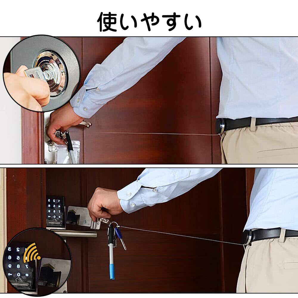 【自由に収縮】最長約30-38cmまで引っ張ることが可能ですので、使用時は製品を外す必要がありません、バッグ、ベルトループなどに簡単に着脱可能。