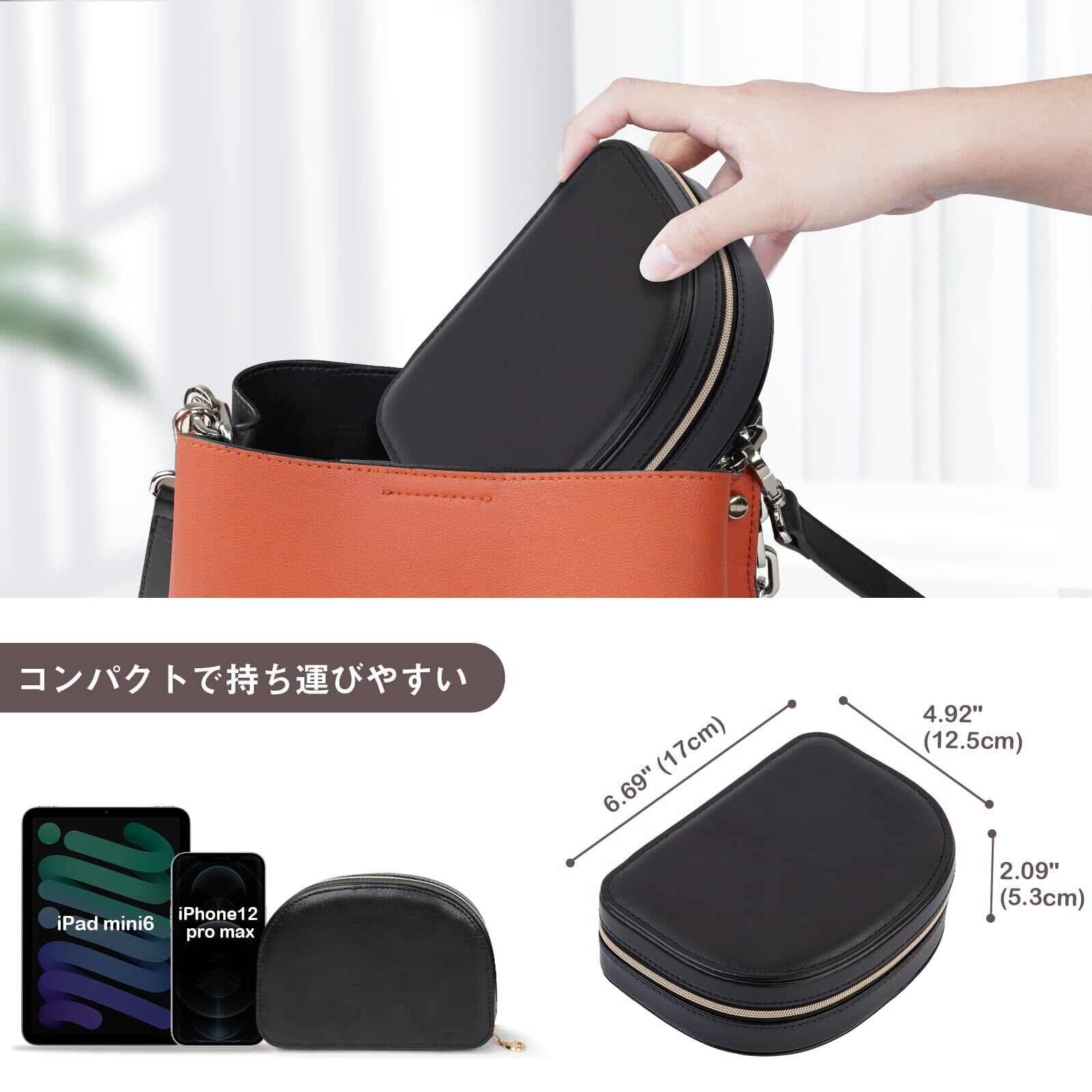 ProCase 小さなジュエリーボックス 半円形 小型宝石箱 旅行・出張用 女性 アクセサリ ジュエリー収納 ブラック・Mサイズ