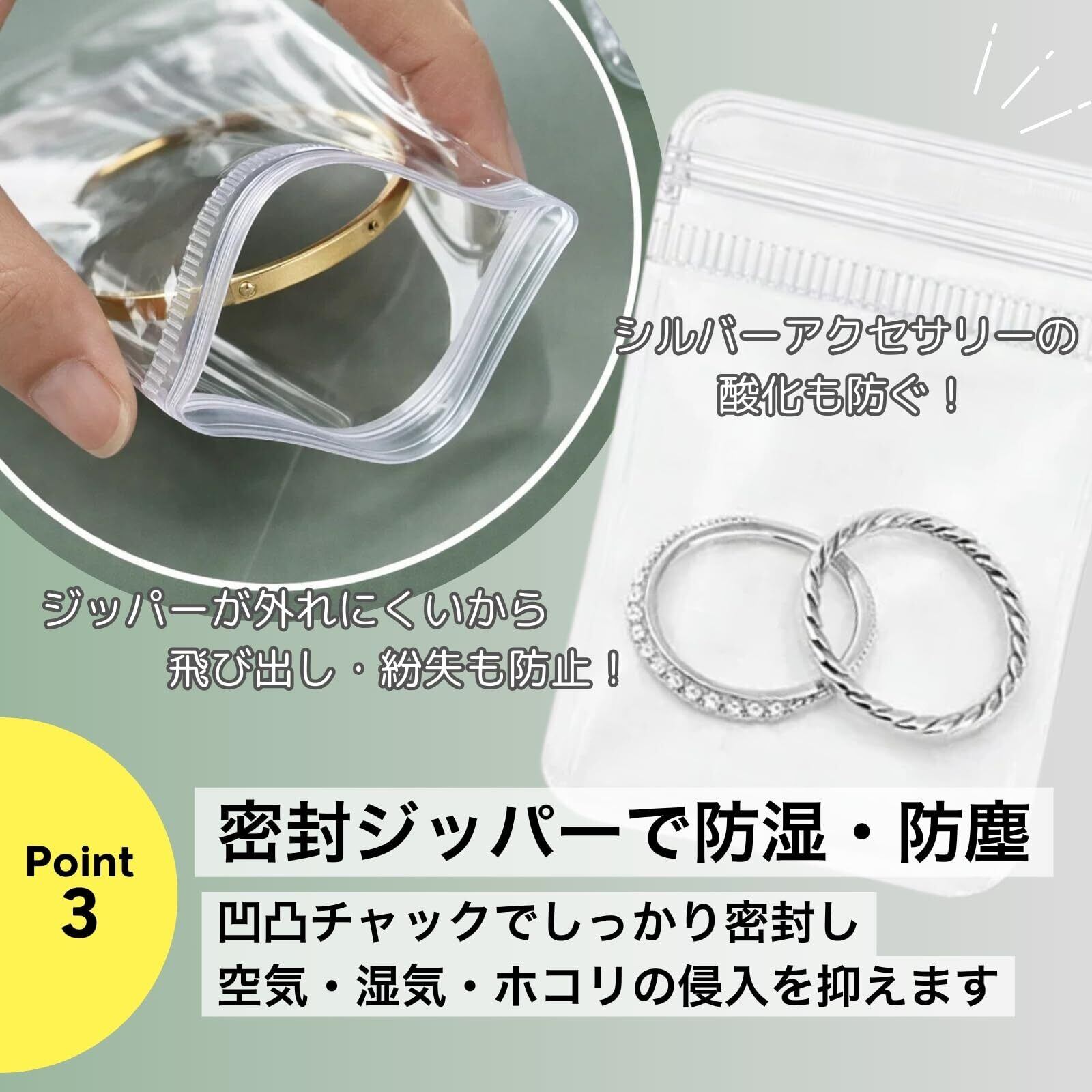 【密封ジッパーで防湿・防塵】凹凸チャックでしっかり密封し、空気・湿気・ホコリの侵入を抑えます。酸化による変色・くすみを抑えることで、シルバーやメッキ小物の保管におすすめ。チャックが外れにくく、小物の飛び出しや紛失も防止。長期保管・発送梱包・旅行時の携帯まで幅広く活躍します。