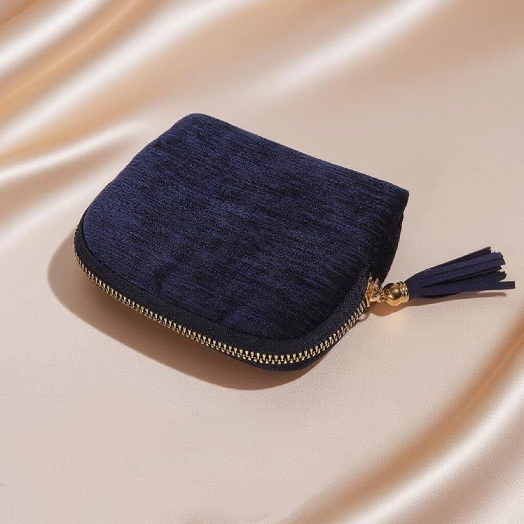 トラベル用 ジュエリーポーチ 持ち運び ジュエリーボックス アクセサリー収納 ベルベット素材 傷防止 タッセルジッパー付き ピアス イヤリング 指輪 腕時計 ネックレス