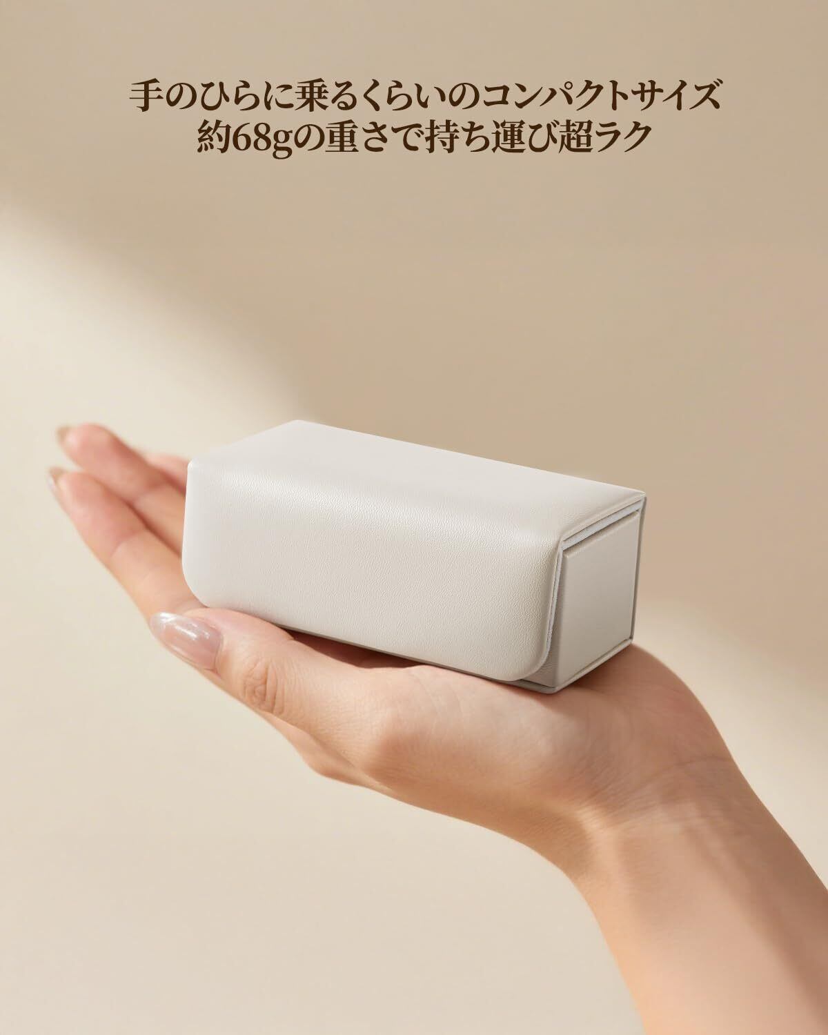【コンパクト軽量で可愛らしいデザイン】約10×5×4のサイズに抑えつつ、重量もわずか70gとなる設計を採用しています。バッグの中で場所を取らず、通勤・旅行はもちろん、日常のお出かけにもぴったりの使い勝手です。さらに、そのまま手持ちするだけでおしゃれ感が増す、可愛らしいデザインが特徴です。