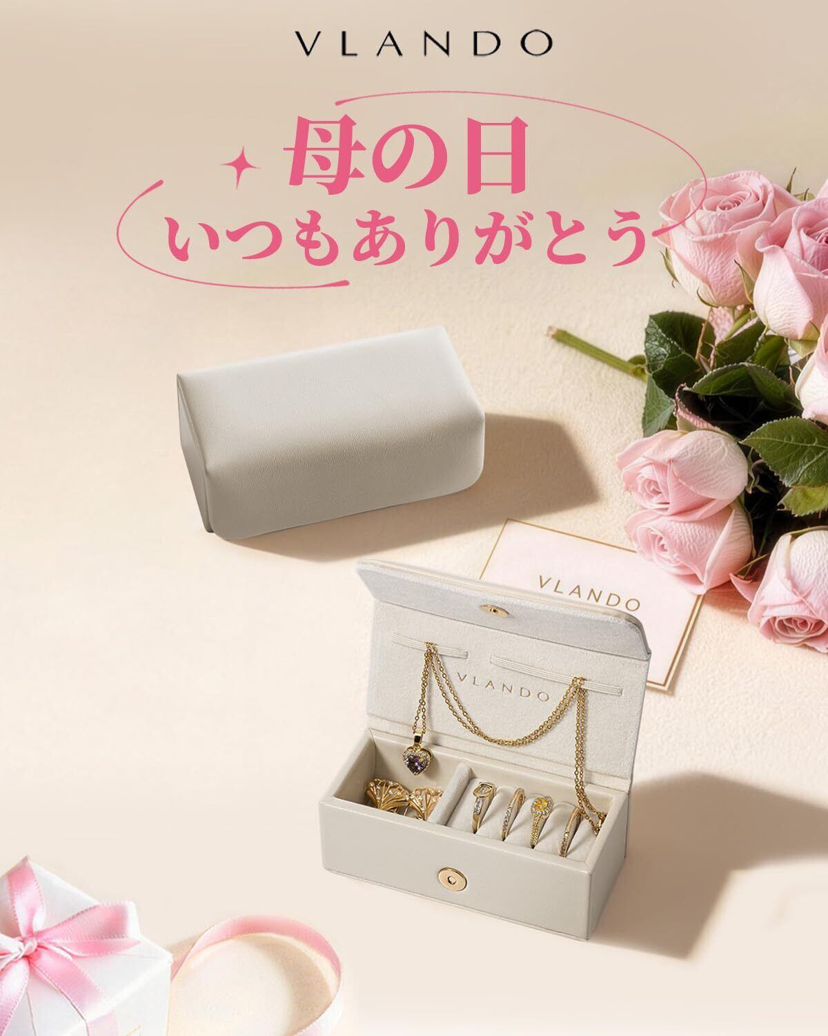 VLANDO アクセサリーケース 持ち運び アクセサリー収納 携帯用 ジュエリー ミニ 磁気ボタン コンパクト ポーチ リング ピアス 小物入れ 旅行 便利グッズ 誕生日プレゼント 母の日 (アイボリー) | 毎日発送✿はなまる