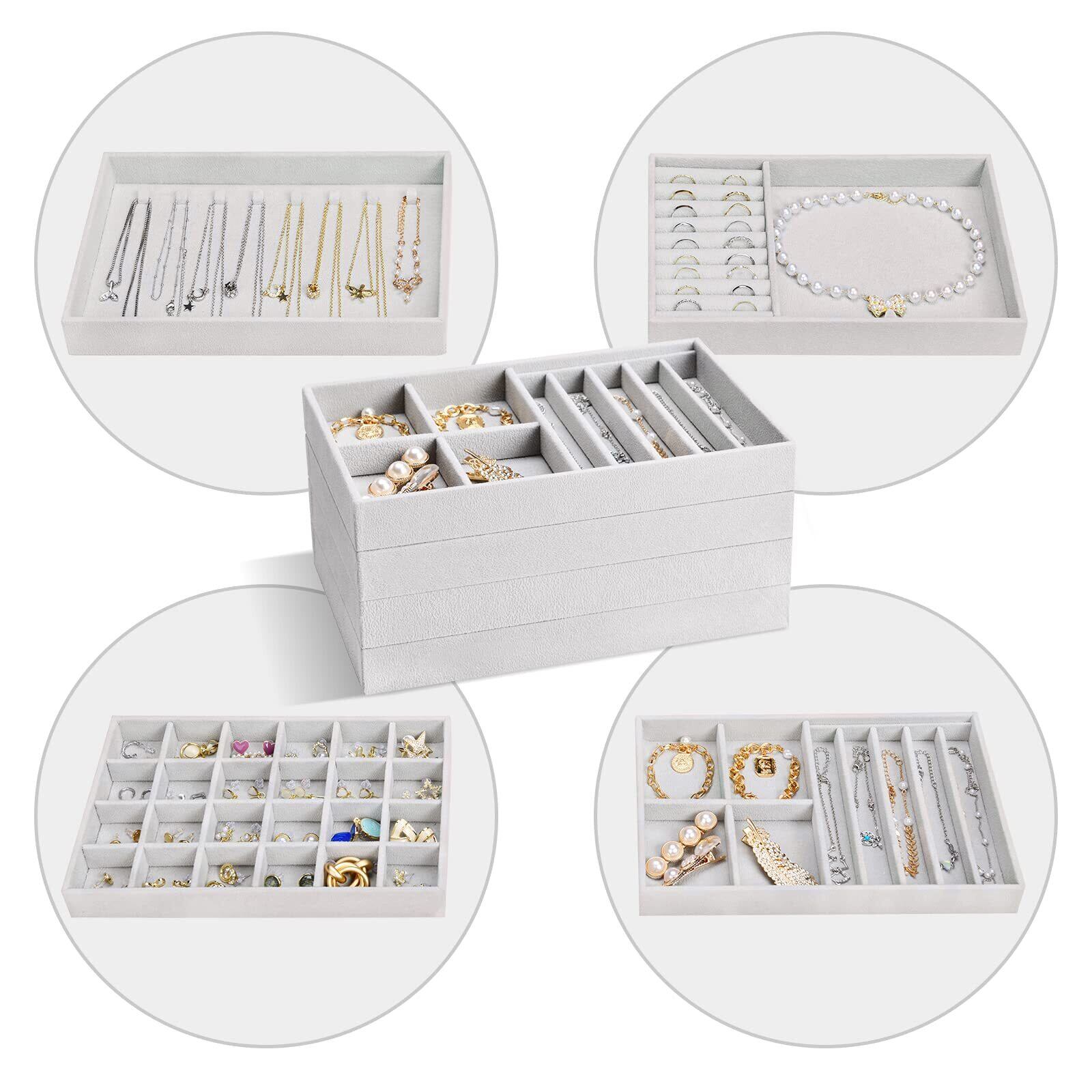 ProCase ジュエリートレイ 4個 ジュエリー収納 積み重ね可能 アクセサリケース ドレッサー引き出し用 ディスプレイ 仕切り付き グレー