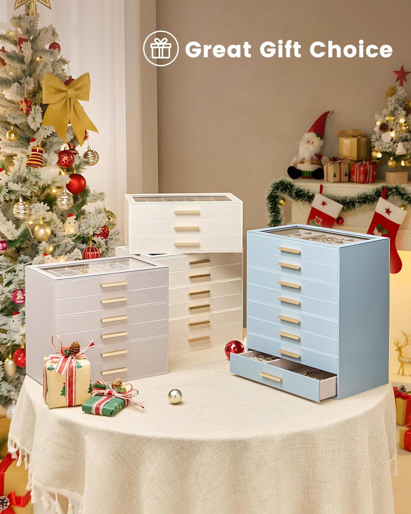 整理力抜群: 3段引き出しでネックレス、リング、ブレスレット、イヤリングをまとめて収納。ほこりから守り、すぐに取り出せます