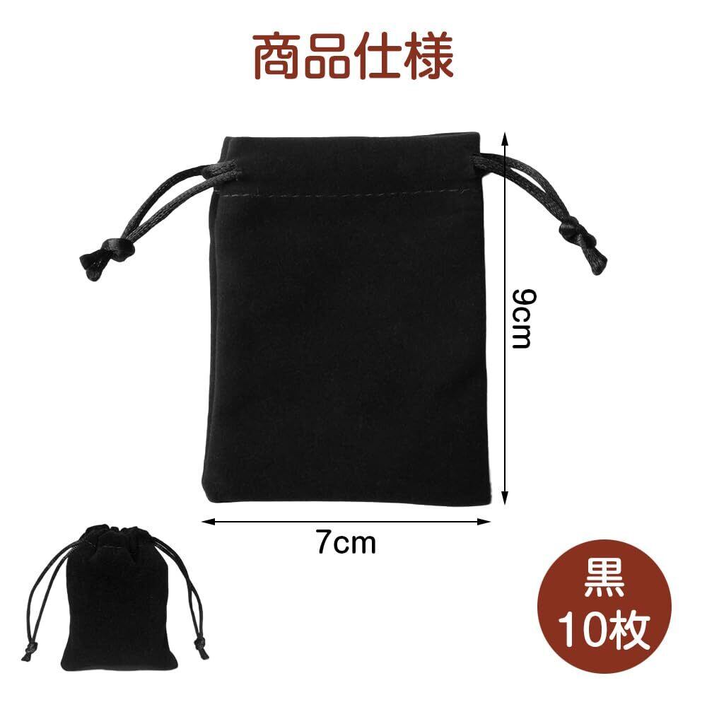 ミニ 巾着 ベロア 10枚セット 9cm×7cm ジュエリーポーチ ベルベット 巾着袋 アクセサリー保存 収納 小物入れ (ブラック, 9×7cm)
