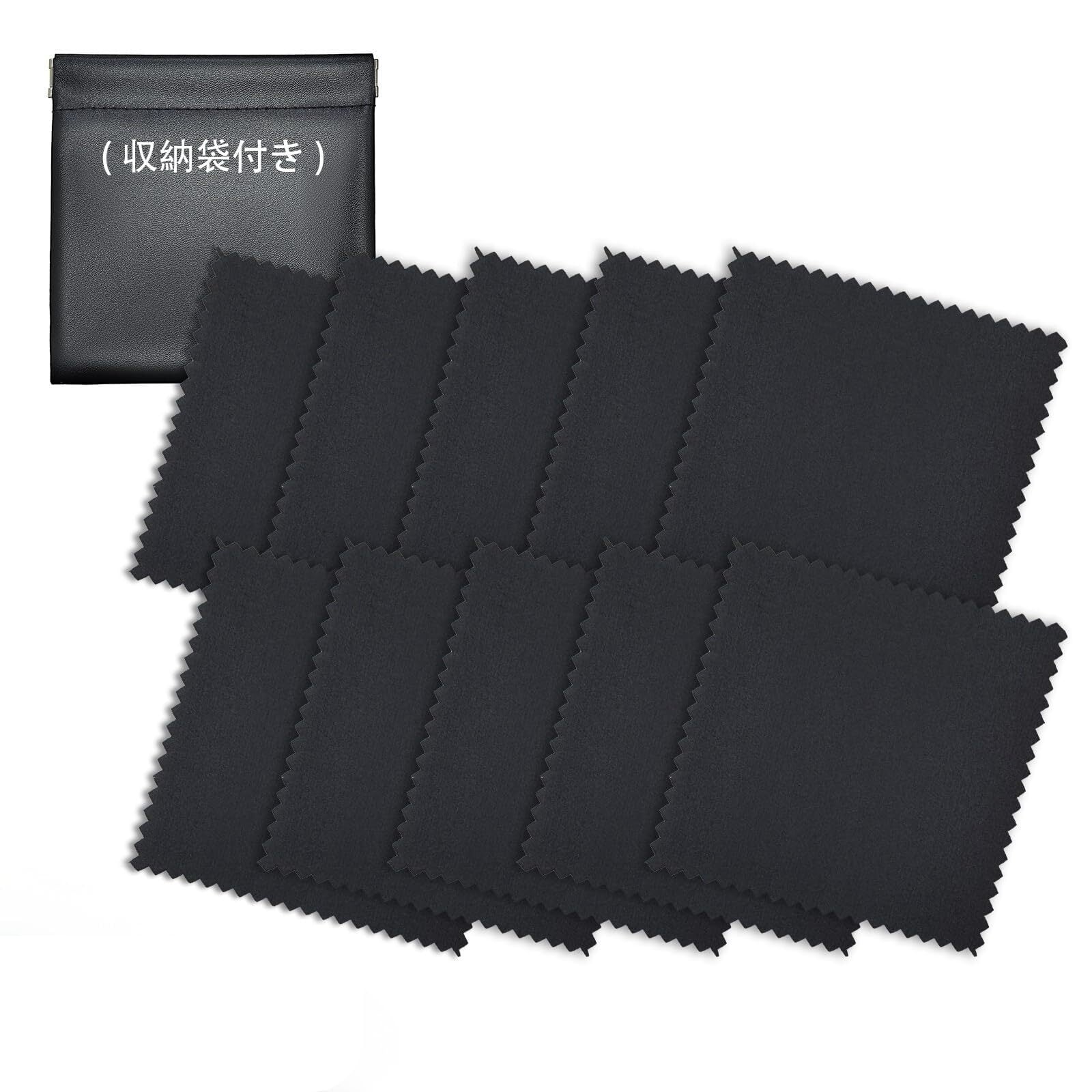 シルバークロス シルバー磨きクロス 金属磨きクロス 10個入りPU製収納バッグ付き,ジュエリーのクリーニング、シルバージュエリーのメンテナンス、研磨にご使用いただけます,シルバージュエリー、貴金属、シルバー製品、指輪、時計などに最適です,黒,8×8cm | 毎日発送✿はなまる