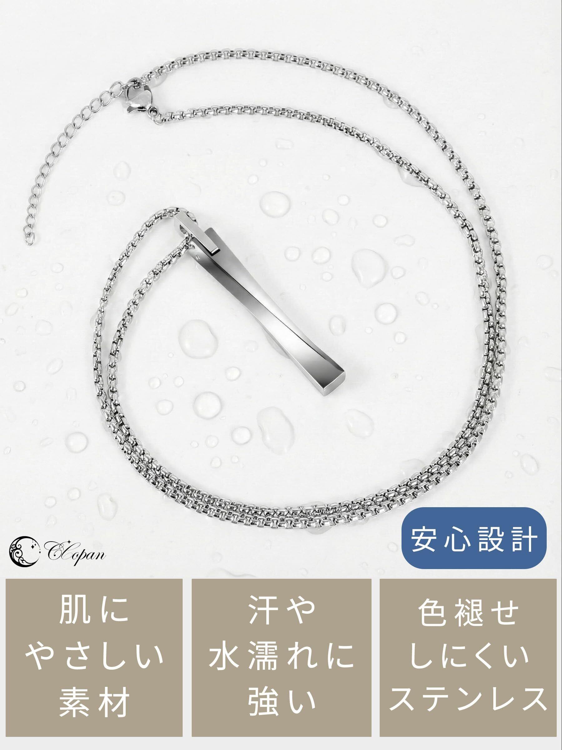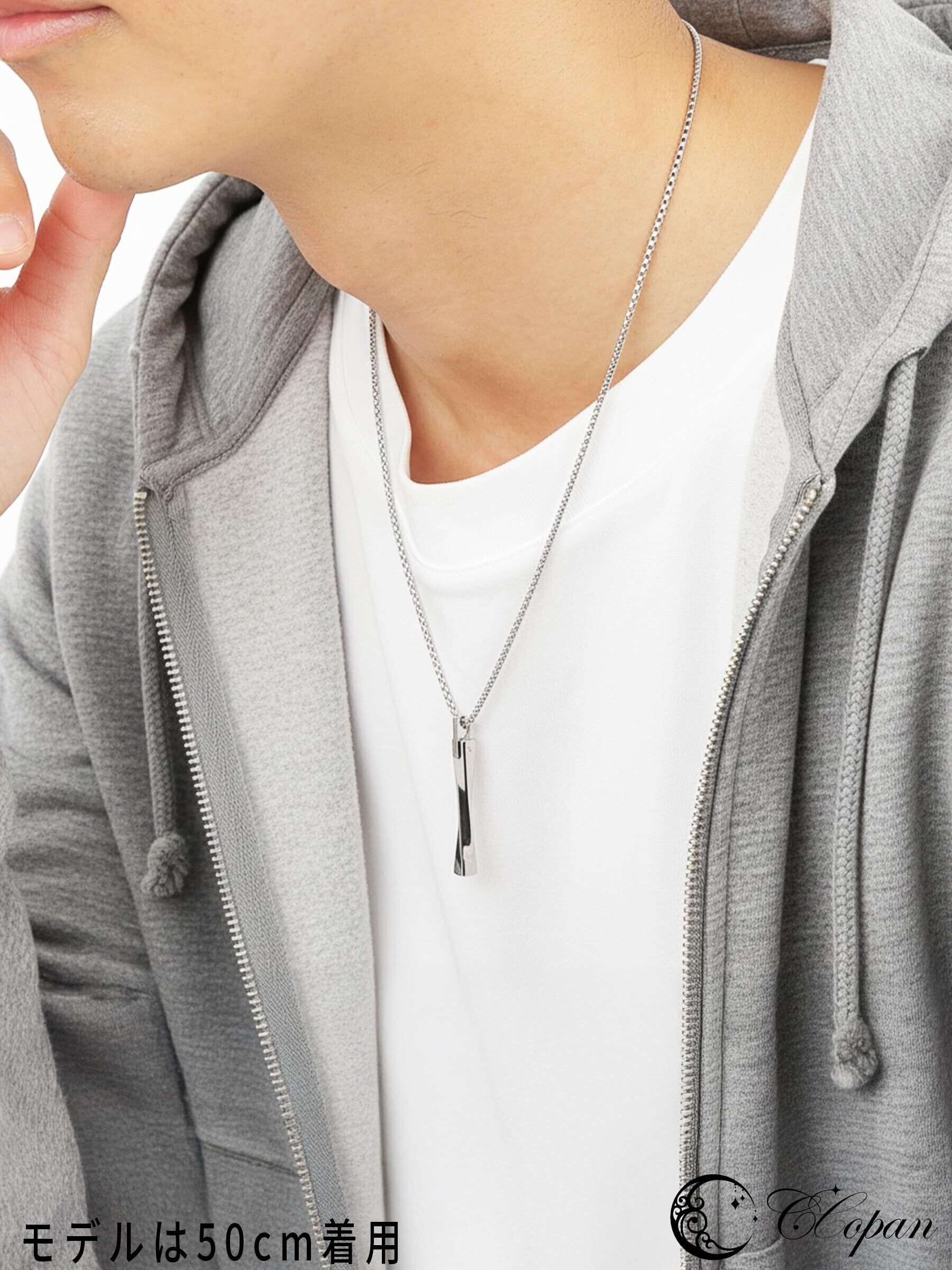 【メンズ ネックレス ステンレス】汗や水しぶきが気になる日も使いやすいステンレス素材。シンプルなチェーンで服装を選びにくく、普段使い〜外出まで合わせやすいデザインです。