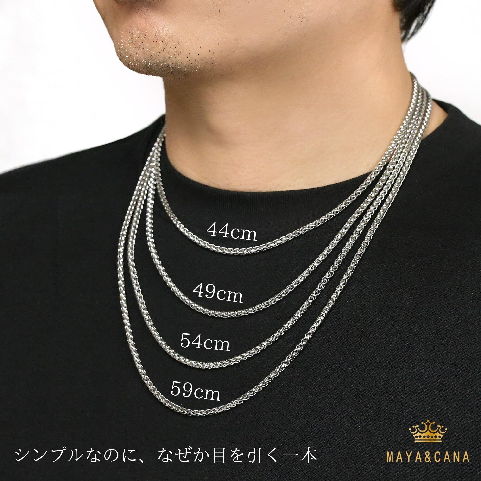 【バリエーション/仕様】 長さ: 44cm/49cm/54cm/59cm 色:シルバー/ゴールド/虹 太さ: 3mm 留め具の幅:7mm プレート幅:5mm 重量: 15g