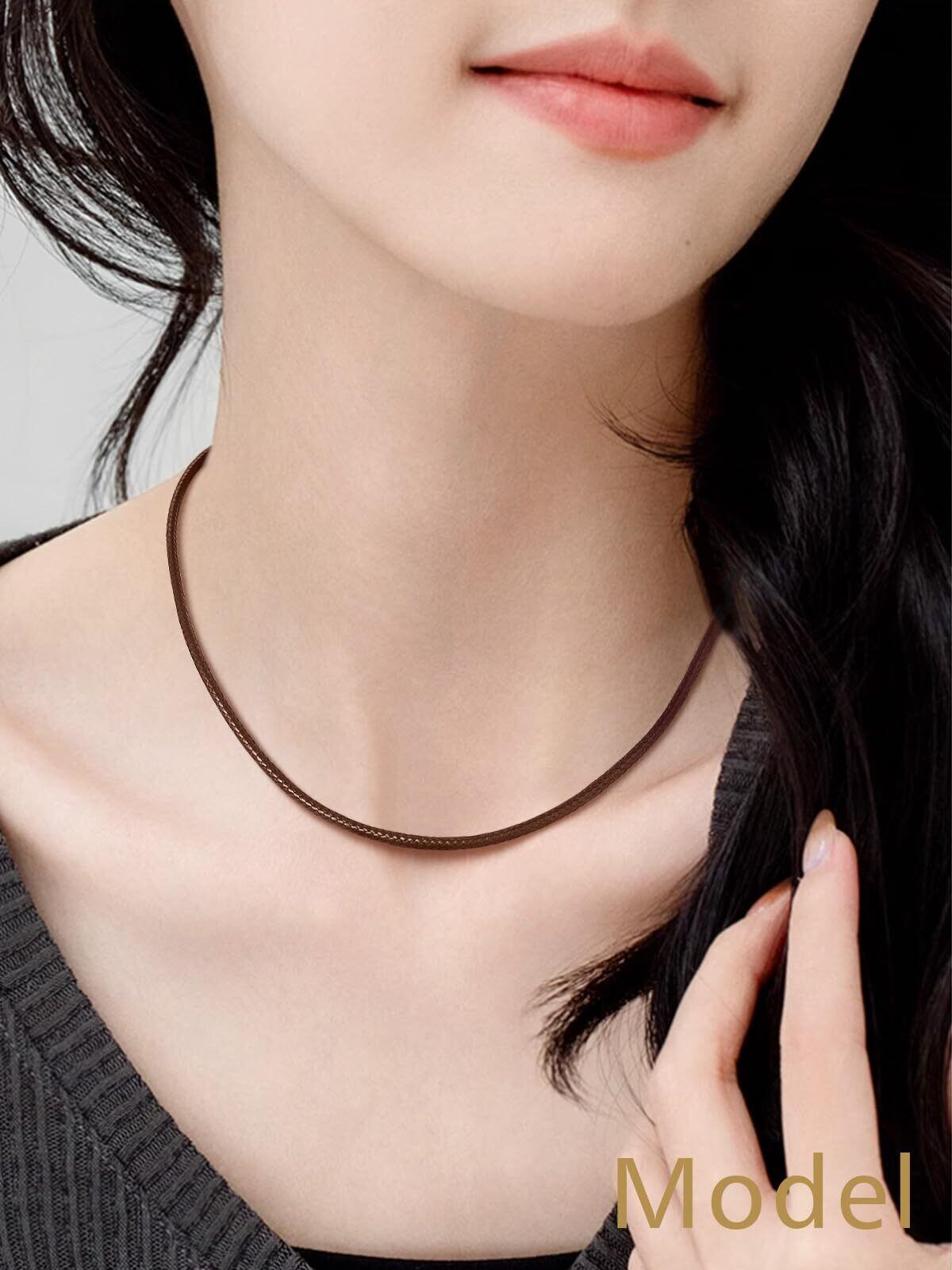 【お肌に優しい紐ネックレス】チェーンネックレスはレザーを採用します。水や汗に強く、アレルギーになりにくく、頑丈で優れた材質です。金属アレルギーを心配する方もご安心してお使いいただけます。