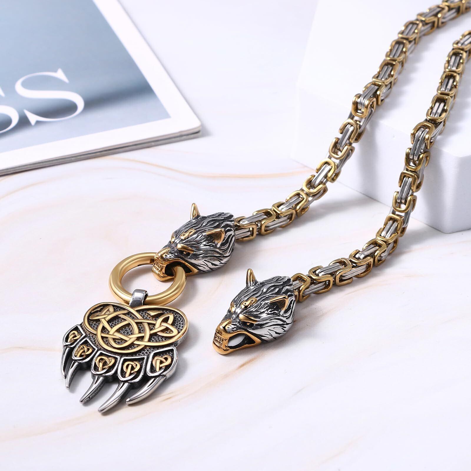 【重型欧米風ネックレス】このメンズ向けのバイキングスタイルのネックレスは、着用者に困難を克服する強さ、恐怖に立ち向かう勇気、そして周囲の人々への寛大さを与えます。 お守りとして幸運と強さをもたらす意味があります。男性向けのファッションなバイキングギフトです。
