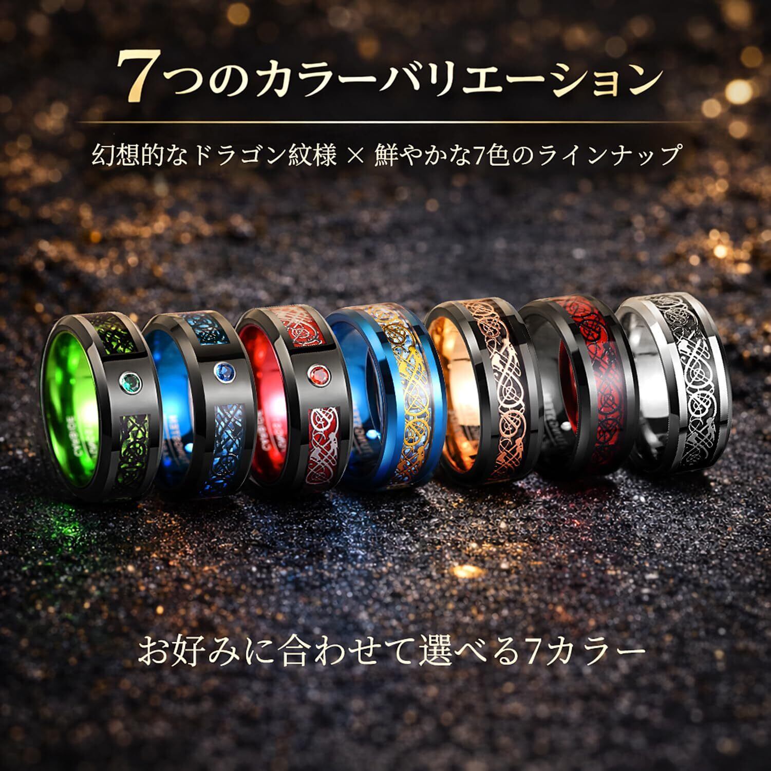 083BASE タングステンリング メンズ ドラゴンデザイン カーボンファイバー 8mm幅 平打ち 指輪 ブルー サイズ12号