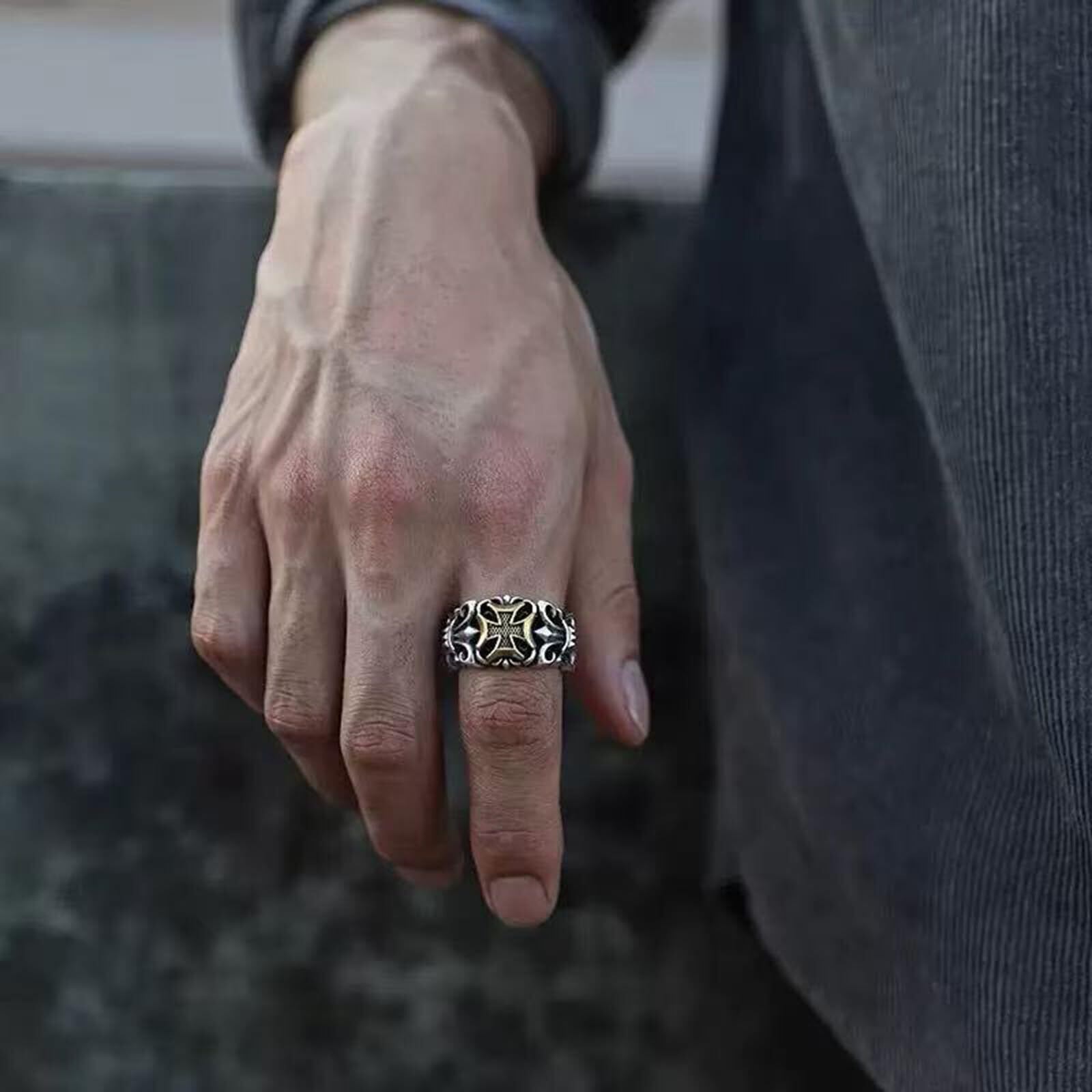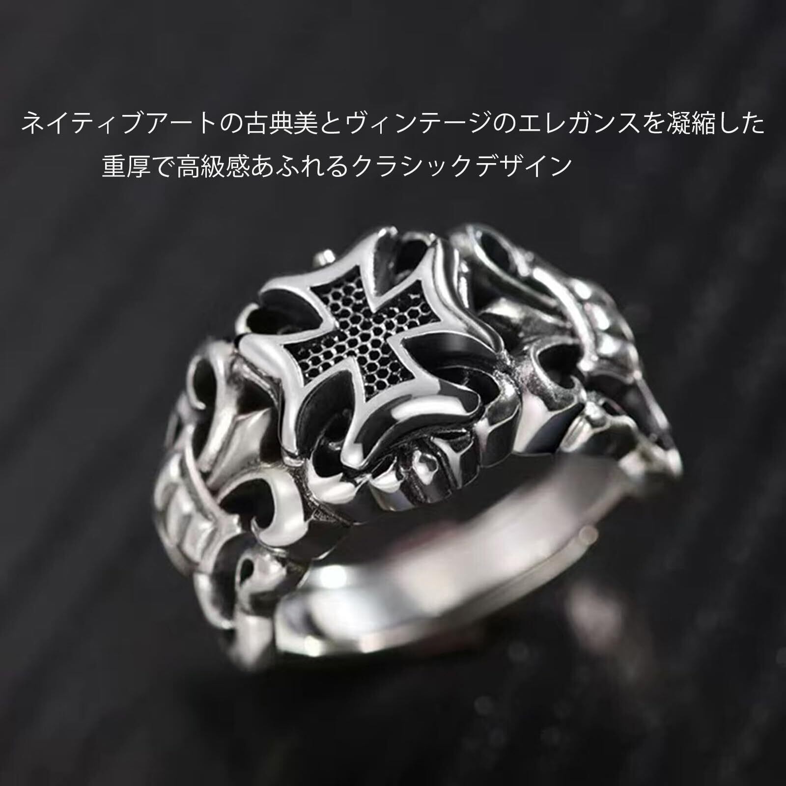 指輪 メンズ リング シルバー925 太め ごつい クロス シンプル リング レトロ ジュエリー ヴィンテージ アクセサリー