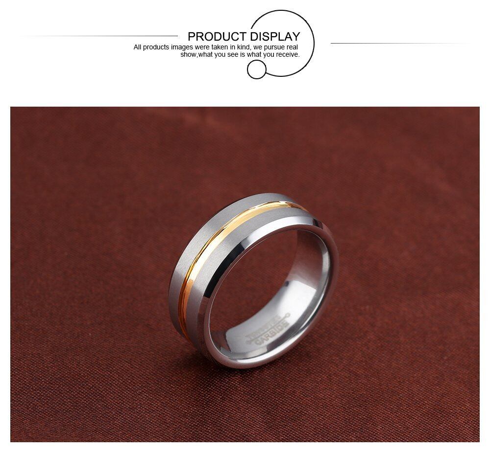 「Rockyu 指輪」 タングステン リング メンズ 指輪 おしゃれ シルバー ゴールド 金線 指輪 8号(指周り:47mmに合う) 幅:8mm タングステン比重:金とほぼ同じ、硬度:ダイヤモンドに匹敵、タングステンは耐久性に優れ、傷がつきにくいため、いつまでもその高度な輝きを失いません。【シンプルなデザイン】大人の男性にもピッタリのさりげなく男らしさを与えてくれる魅力的なタングステンメンズ指輪。