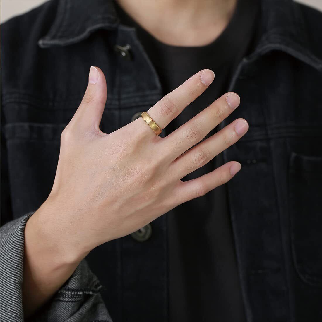 「Rockyu 指輪」 タングステン リング 指輪 ゴールド 金指輪 幅5mm 14号(指周り:55mmに合う) タングステン比重:金とほぼ同じ、硬度:ダイヤモンドに匹敵、タングステンは耐久性に優れ、傷がつきにくいため、いつまでもその高度な輝きを失いません。