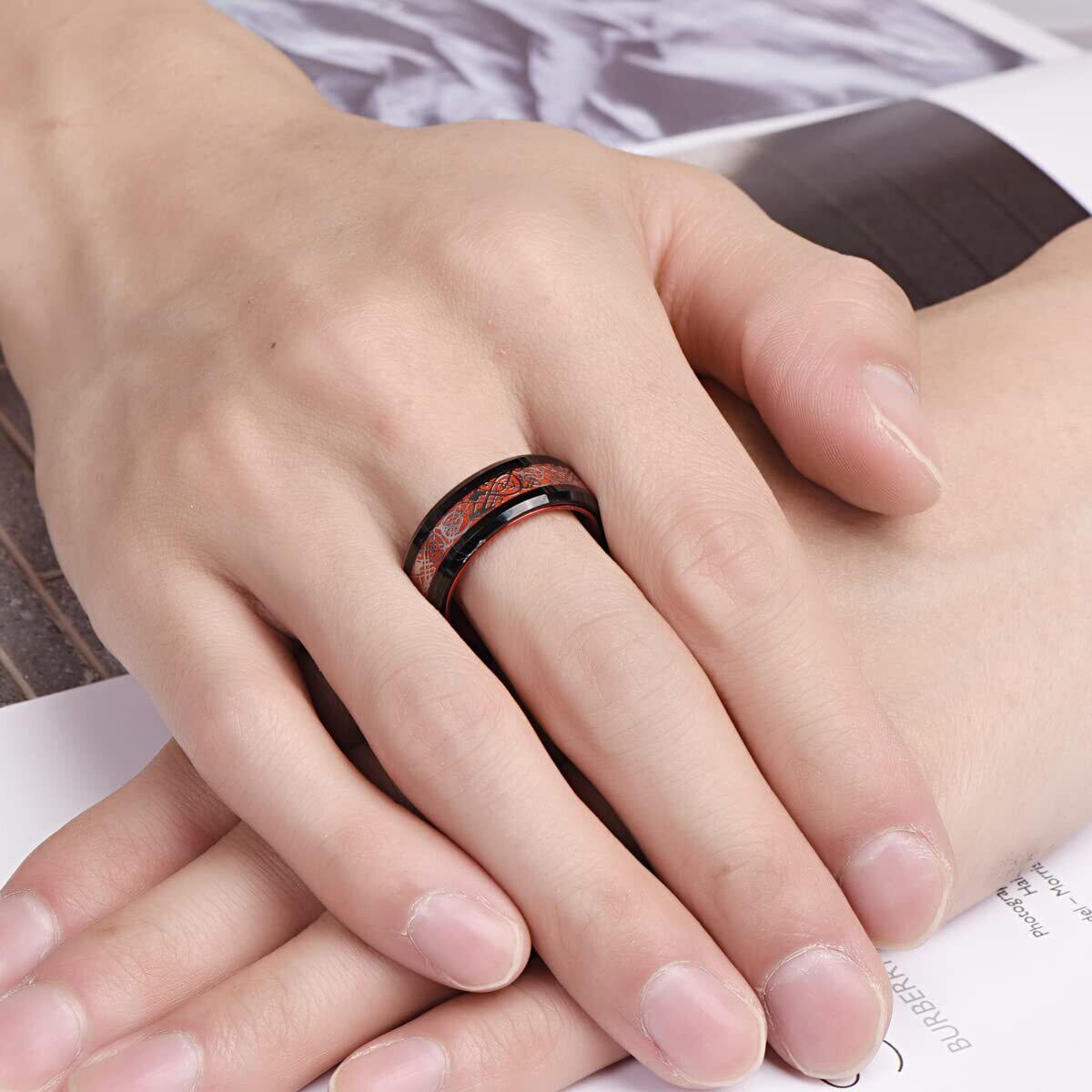 メンズ リング タングステン 炭素繊維(カーボンファイバー) キュービックジルコニア 龍紋 ドラゴン 幅:8mm カラー:レッド 33号