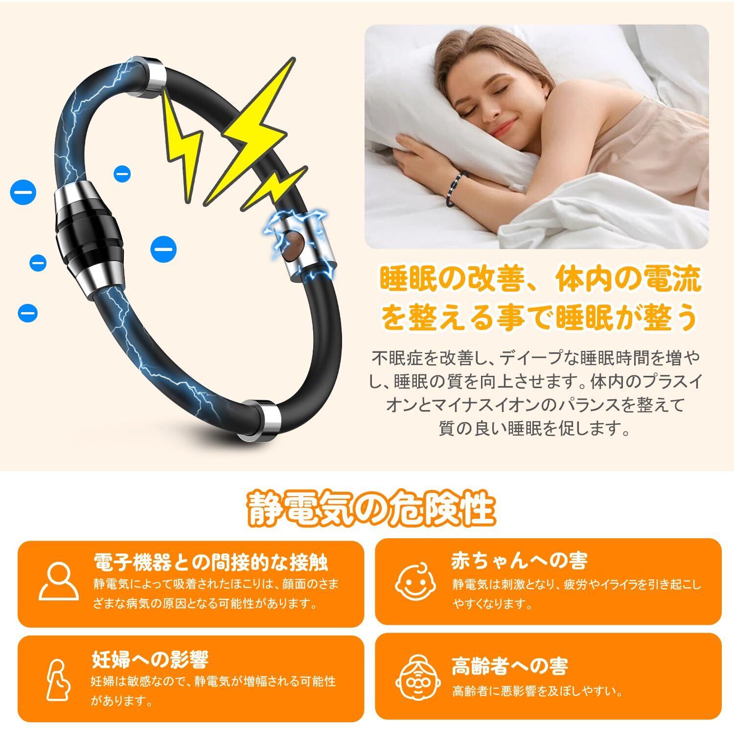 【静電気の悩みを解決】静電気除去バンドは、負イオンゲルマニウム等の作用により、静電気の除去効果を発揮します。装着から2~3週間後には、静電気の発生量が著しく減少します。静電気防止ブレスレットは、柔らかいシリコンとアニオンゲルマニウムを採用しており、優れた静電気防止効果を発揮します、少なくとも1週間はご使用ください。長期装着の効果が最も優れている。