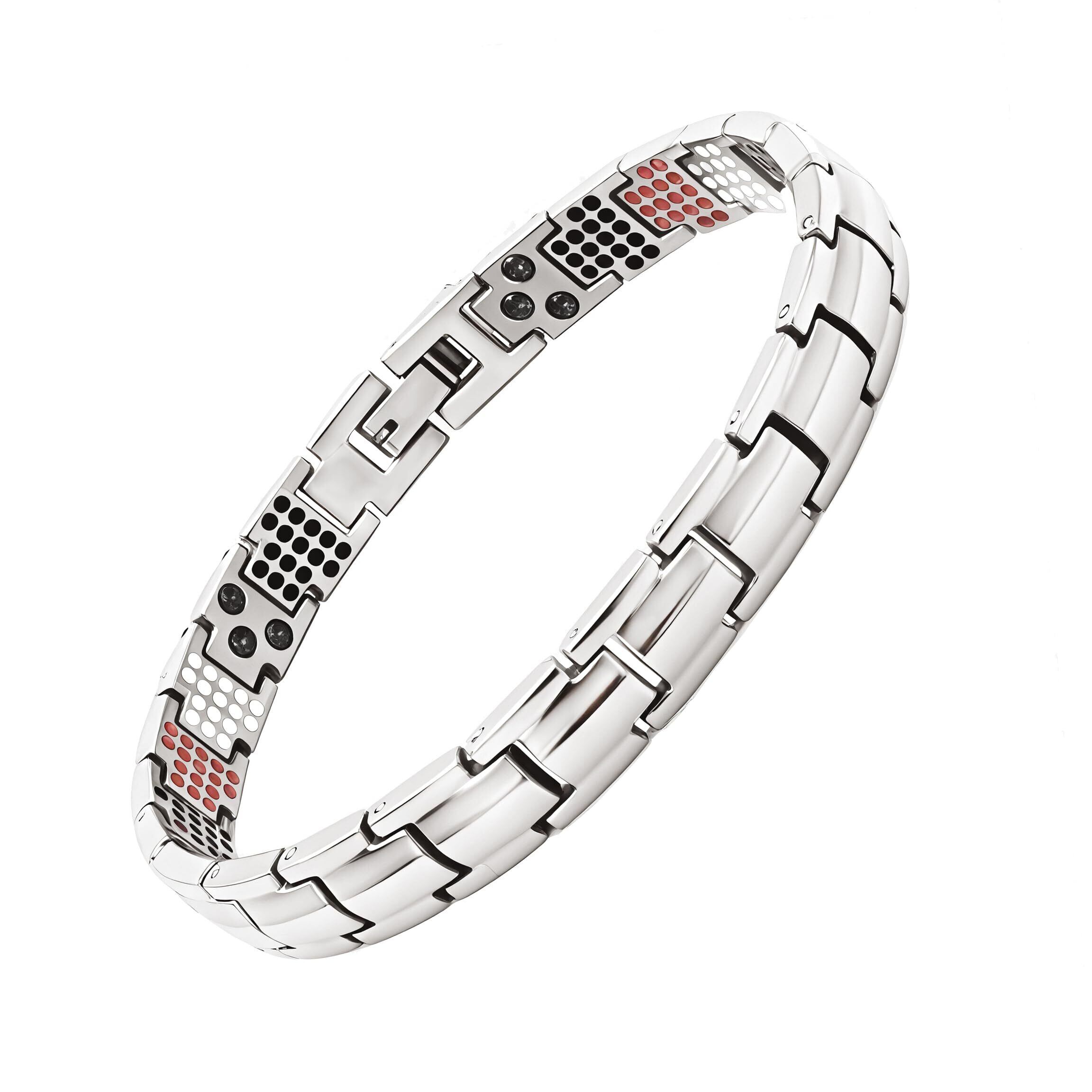 チタン製の磁気ブレスレットに、遠赤外線・ネガティブイオン・ブラックゲルマニウム・強力磁石を背部に特殊加工。日常的に身につけるだけで、身体のバランスをサポートするスタイリッシュな健康アクセサリーです。