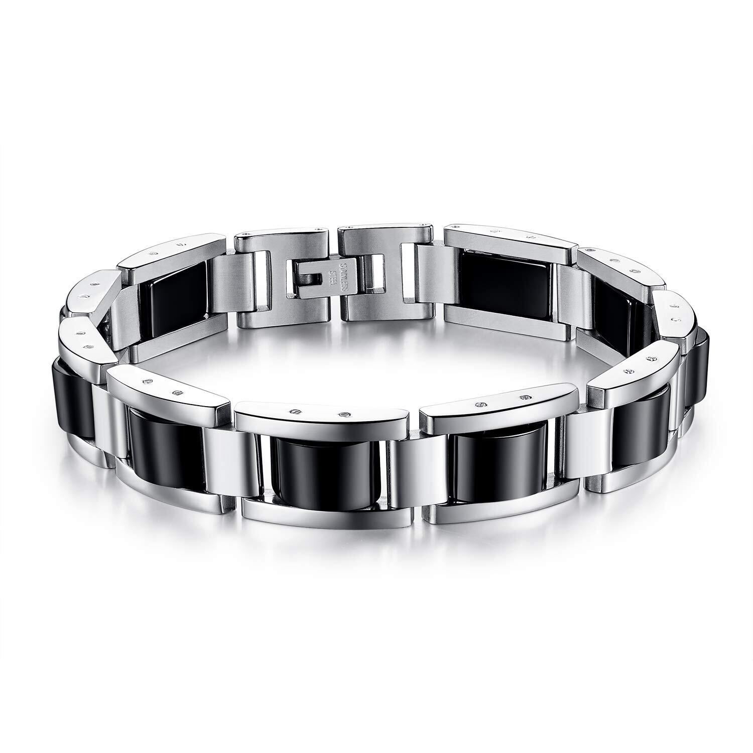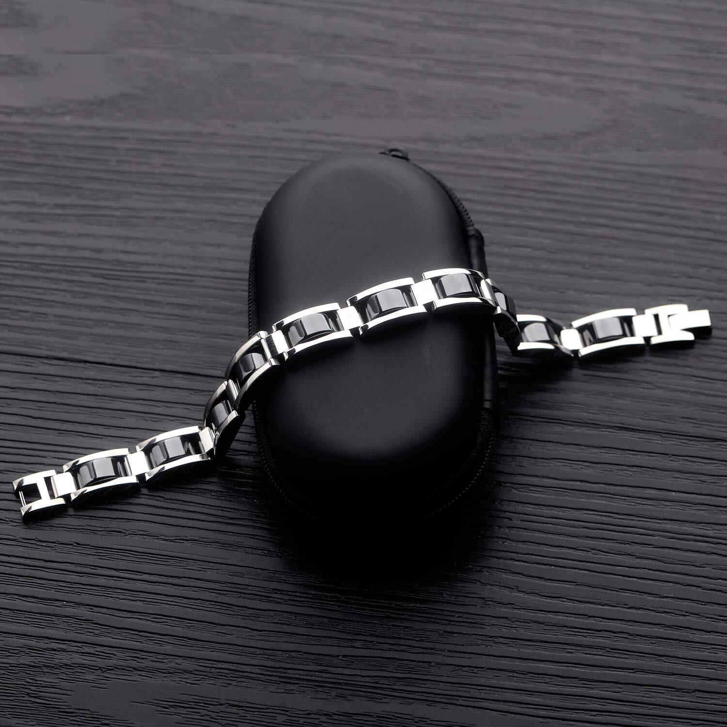 Rockyu 人気 ブランド ブレスレット メンズ チタン シルバー ゲルマニウム 静電気除去 磁気ブレスレット ヨーロピアン 誕生日 ギフト
