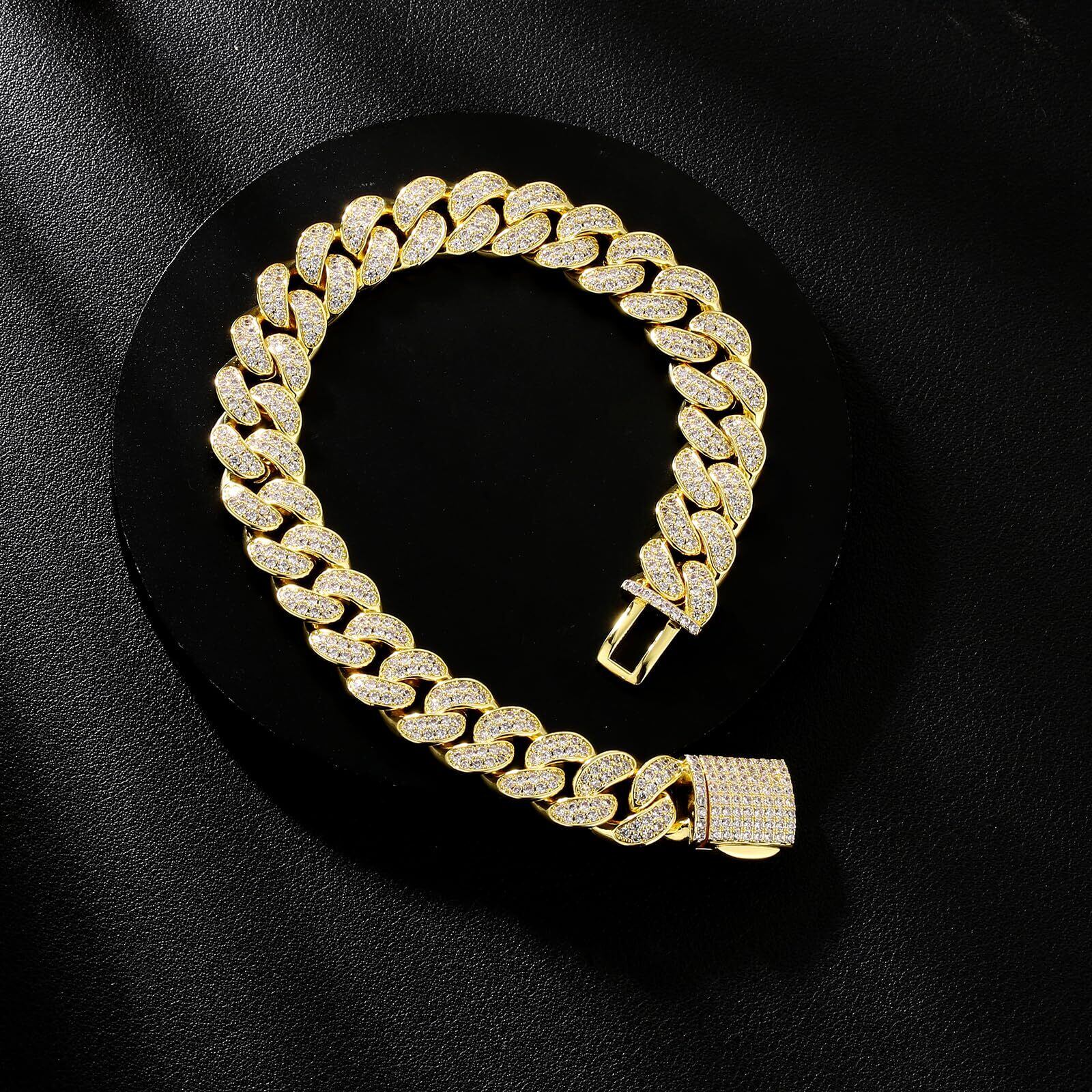 KRKC&CO 喜平ブレスレット ジルコニア マイアミ キューバンブレスレット 12/18mm メンズ ブレス 14K金メッキ CZダイヤ 太目 男性 腕輪 ヒップホップ ストリート かっこいい アクセサリー | 毎日発送✿はなまる