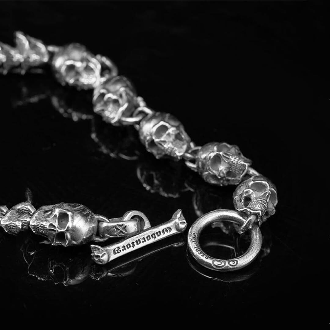 【髑髏デザインのブレスレット】重厚感あるスカルモチーフが印象的なデザイン。古くから「守護」「再生」「強さ」の象徴とされ、身につける人の個性と存在感を引き立てます。