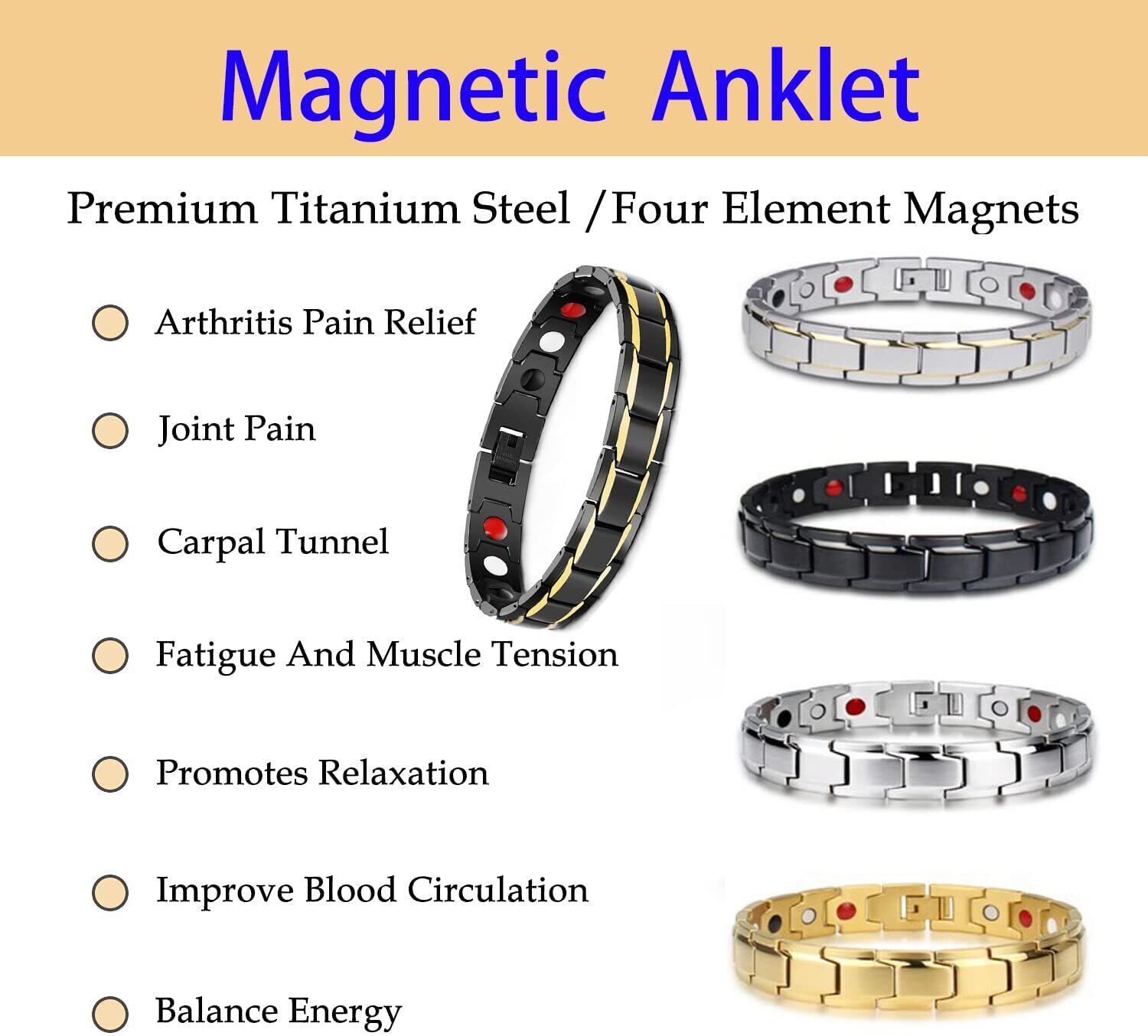 【メンズ磁気アンクレット】:純チタン鋼素材と亜鉛メッキコーティングが100%低アレルギー性で、お肌を刺激せず、鋼や銅にアレルギー反応を起こしません! チタン鋼は非常に強く、軽く、錆びることがないため、日常着に最適です。
