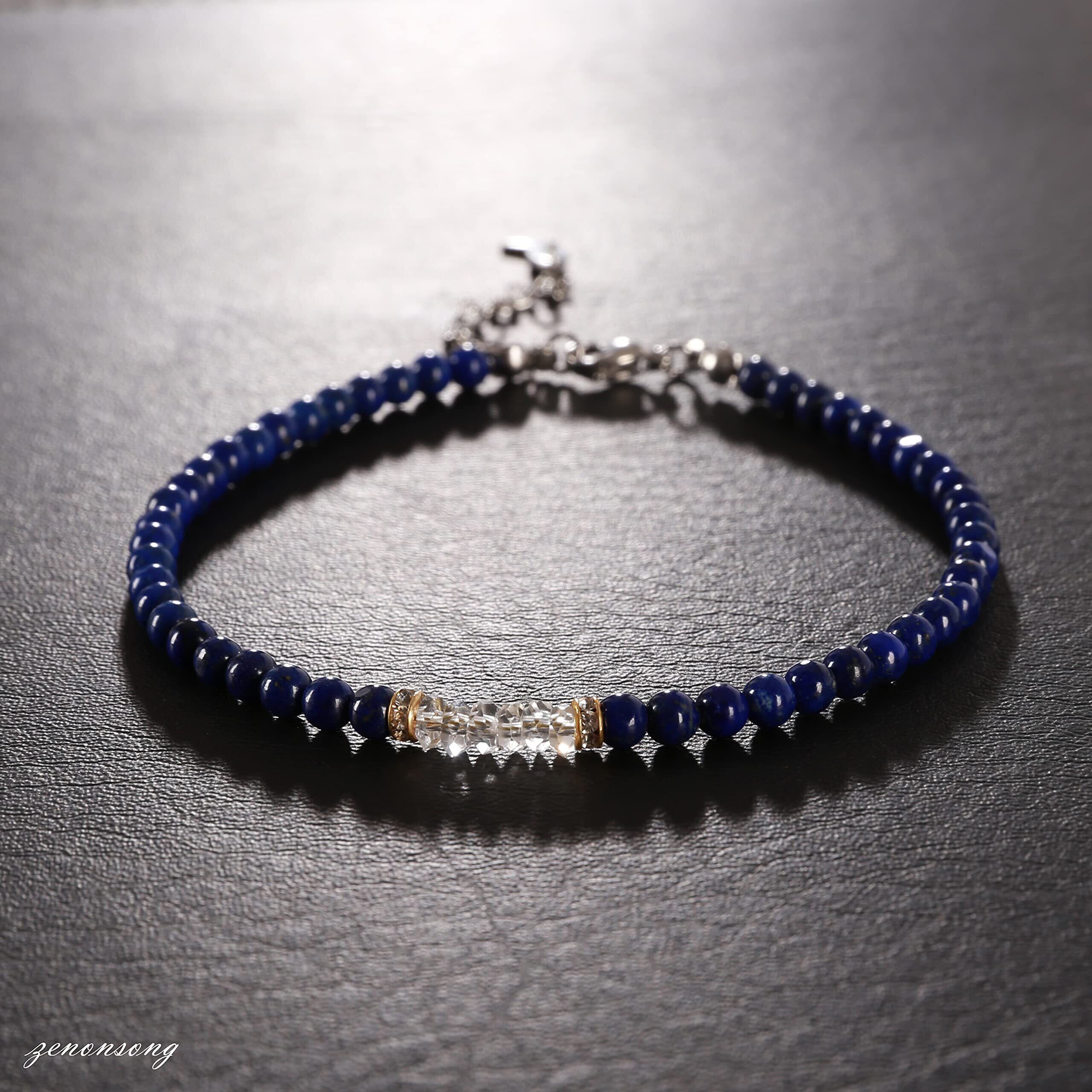天然水晶とラピスラズリを主役にしたメンズアンクレット