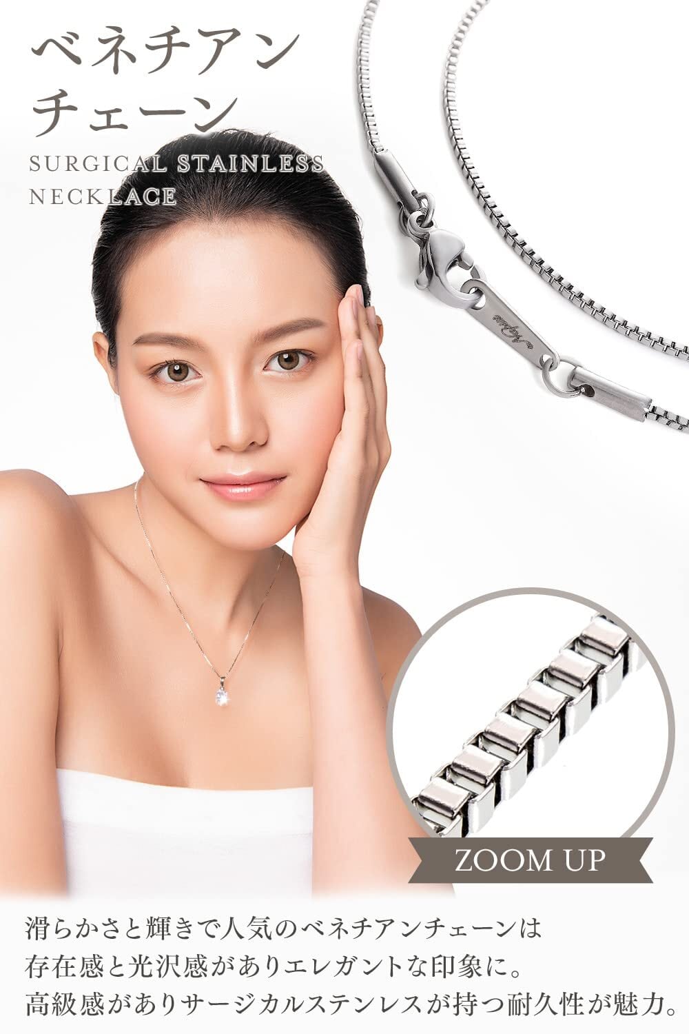 ネックレス チェーン人気 商品 箱型(四角形)を連ねた上品で輝きがある人気のあるチェーンです。 高級感があり、ステンレス製ですのでいつまでもきれいに輝きます。錆びにくく 傷つきにくいので日常使いに便利なネックレスチェーンです。