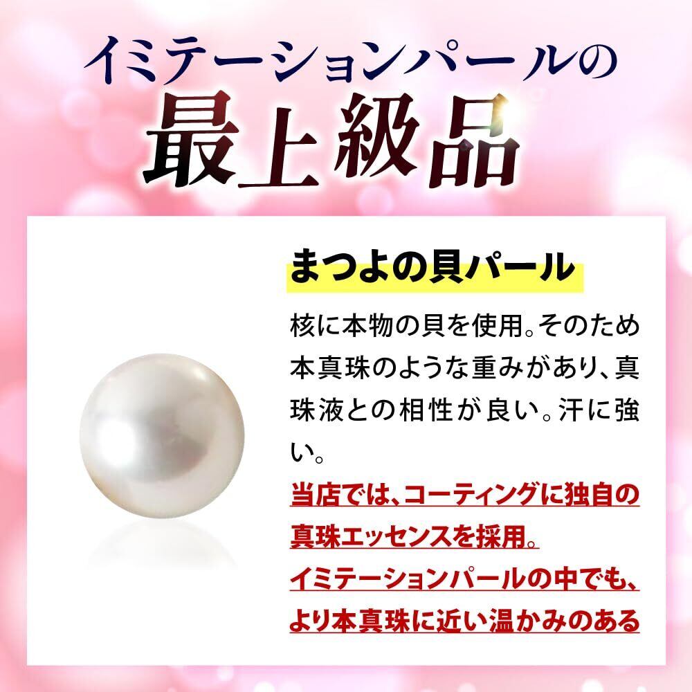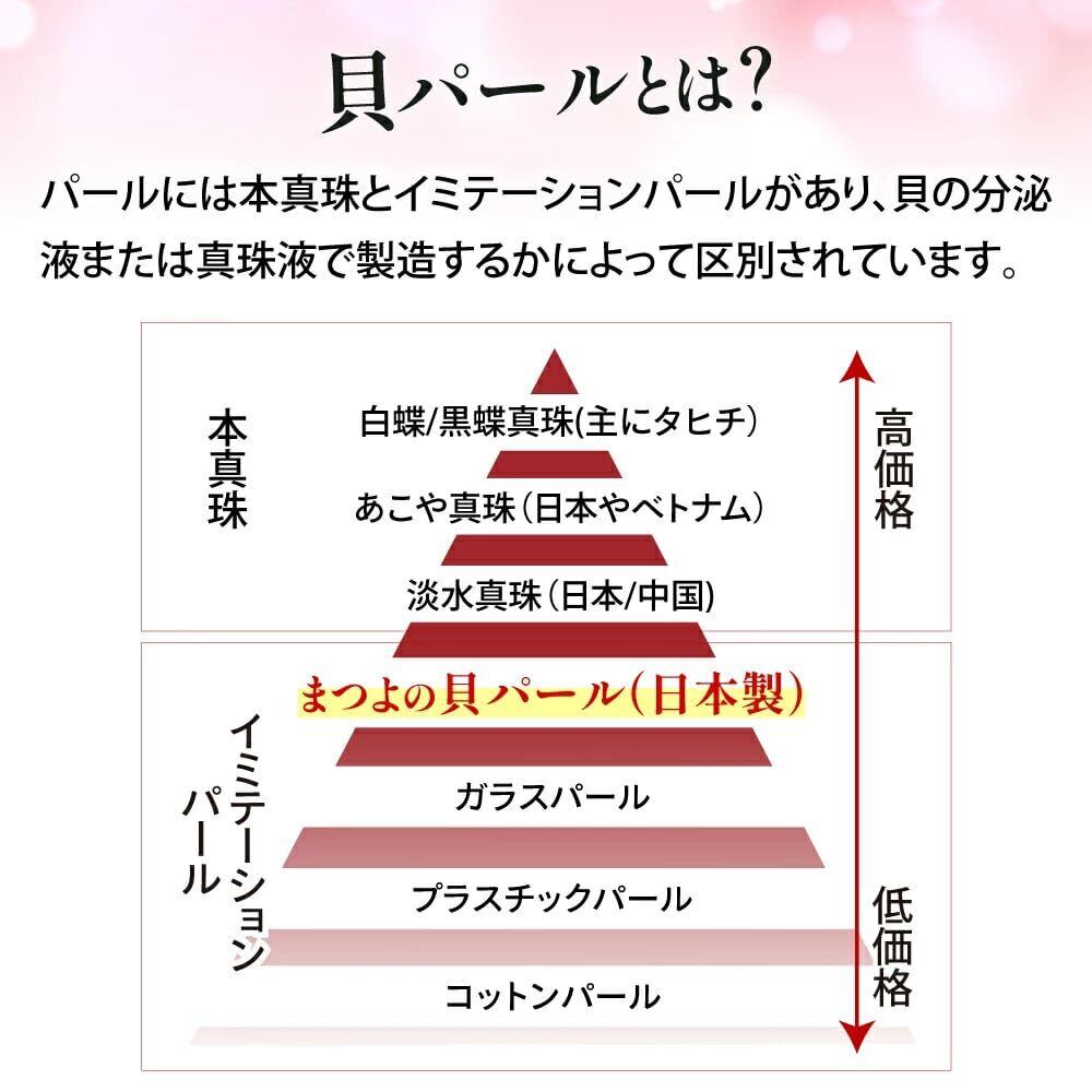 【美しい輝き。日本製の一点物。】真珠の輝きを左右する巻き厚とは真珠層の厚みを言います。まつよの花珠貝パールは12回もの巻き加工を施し、そこから確かな技術を持つ職人が2回の磨き加工を施しています。幾重にも折り重なった厚い真珠の輝きは、まるで天然の花珠真珠のよう。安心の日本製花珠貝パールの美しい輝きをぜひその目でお確かめください。