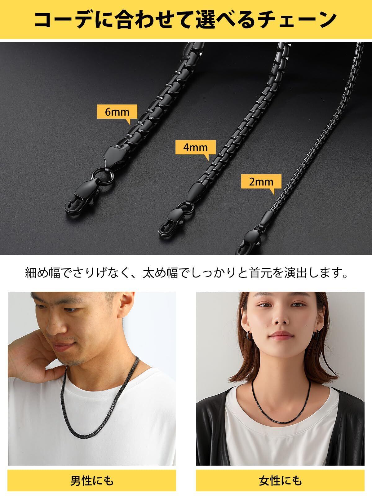 【色も!太さも!長さも選べる!】4mm、6mmの2太さ、シルバー、ゴールド、ブラックの3色、35+5cm、45cm、50cm、55cm、60cm、65cm、70cm、75cm、90cmの8長さ、全48種類を揃えました!