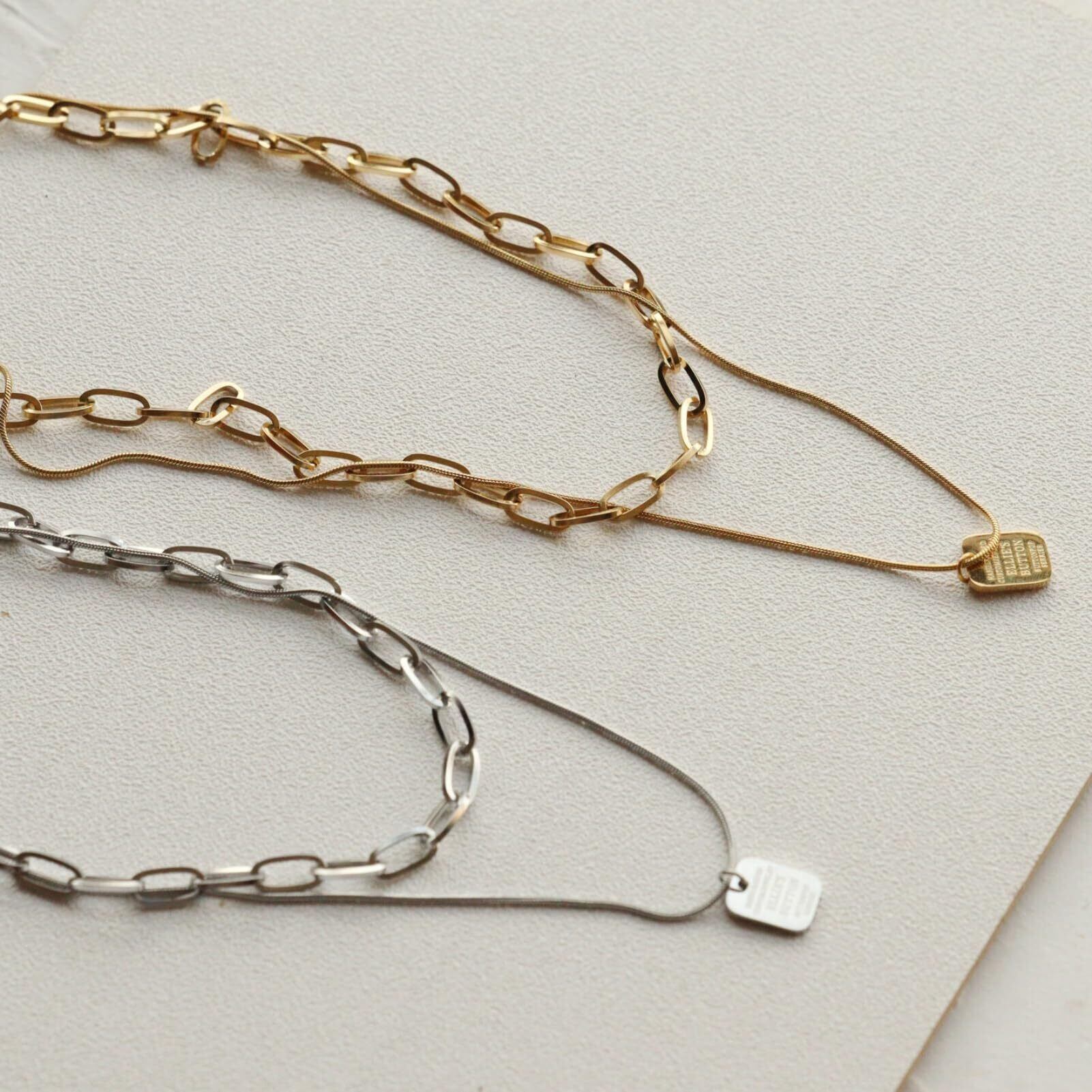 ネックレス レディース メンズ 人気 チェーンネックレス 金属アレルギー対応 2連 サージカルステンレス 2本セット ゴールド シルバー 3way