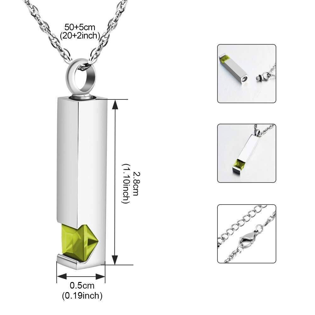 メモリアルペンダント 直方体 誕生石 ラインストーン 手元供養ペンダント 遺骨入れネックレス 取り外し可能 メンズ レディース 記念ジュエリー