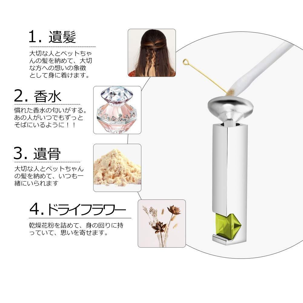 特徴:取り外し可能、ものを納め可能な遺骨アクセサリー。近年流行っている手元供養ミニ骨壷として使用できます。大切な人とペットちゃんの遺骨や遺髪を納めて、手元供養・大切な方への想いの象徴として身に着けます。