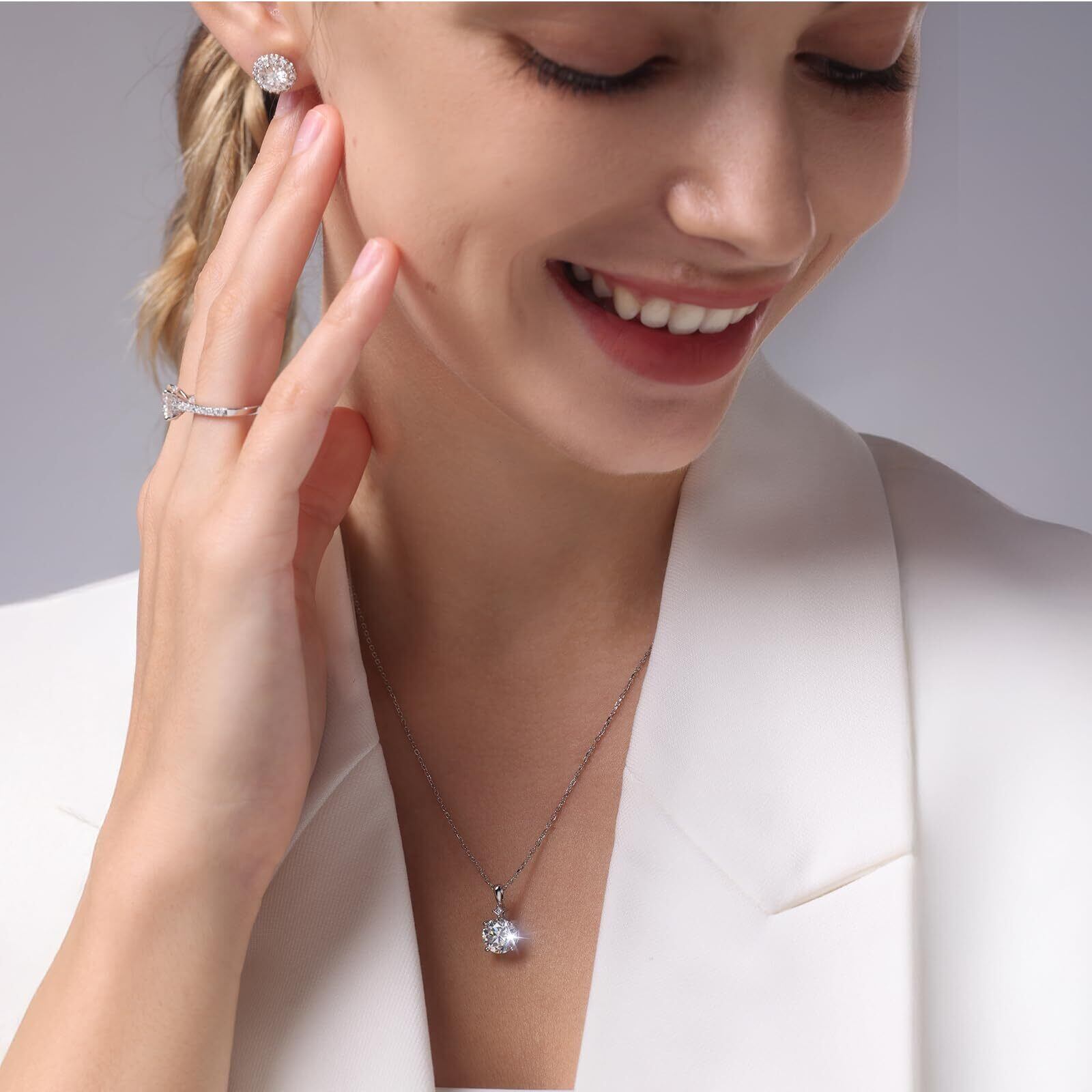 モアサナイト ネックレスレディース:誕生日プレゼント女性 S925スターリングシルバー 一粒ダイヤ 0.5/1.0/2.0/3.0/4.0ct 人工ダイヤモンド 4本爪 金属アレルギー対応 ホワイトゴールドメッキ シンプル 人気 ギフトボックス付き チェーン可調節45+5cm | 毎日発送✿はなまる