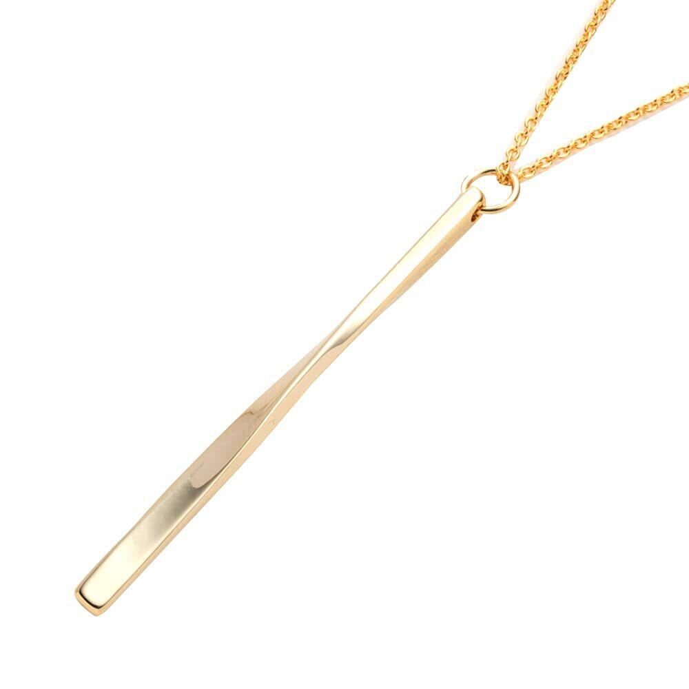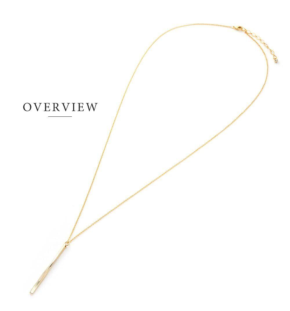 少しひねりを加えたメタルバーが女性らしいリュクスな輝きを放つロングネックレス。いつものコーデにプラスするだけで上品で洗練された雰囲気に。ちょっとした贈り物にも喜ばれるオススメのアイテムです。