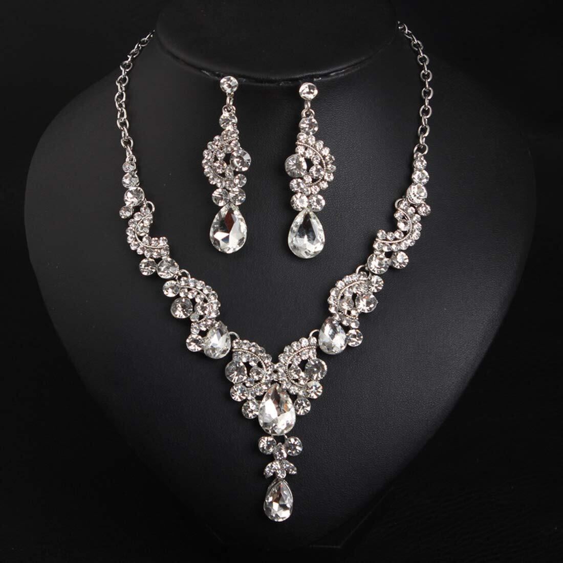 クリスタルストーン ネックレス ピアス 2点セット 結婚式 パーティー 発表会
